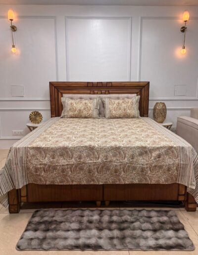 Royal Beige Printed Frill Bedsheet π Classic Elegance for Luxurious Bedrooms