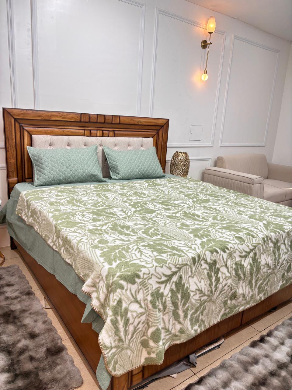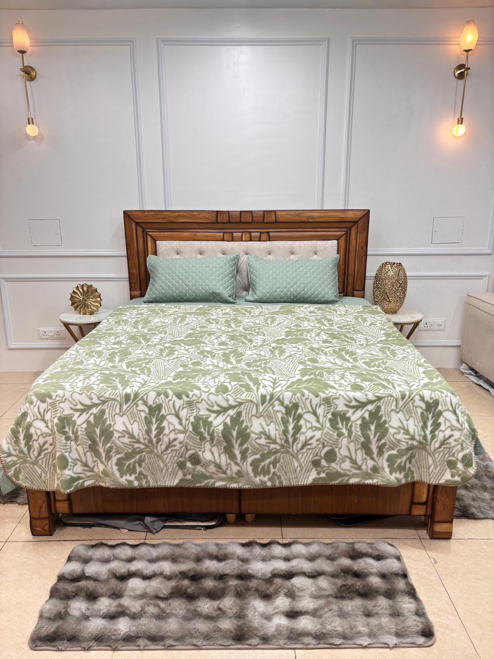 Bring the serenity of nature indoors with our premium embossed AC blanket. Featuring a stunning high-low 3D oak leaf pattern in a sophisticated olive green and cream palette, this blanket is the ultimate style statement. Designed for a velvety-soft touch, it provides the perfect lightweight layer for air-conditioned comfort.