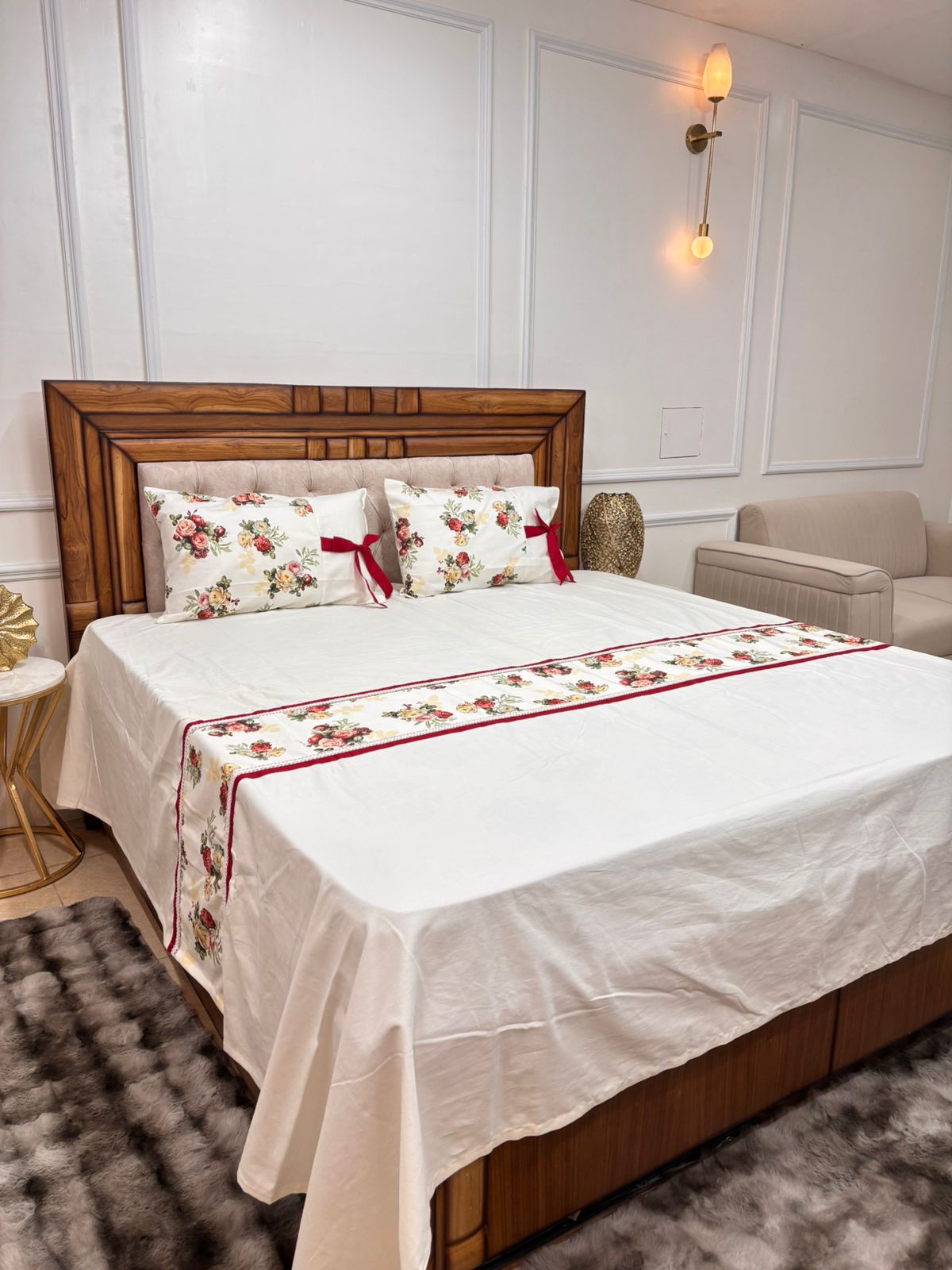 Bring home timeless elegance with this beautifully designed floral border bedsheet. Crafted on a soft, light-toned base, it features delicate rose prints with a refined red border that adds a touch of sophistication and charm ๐ŸŒนโœจ