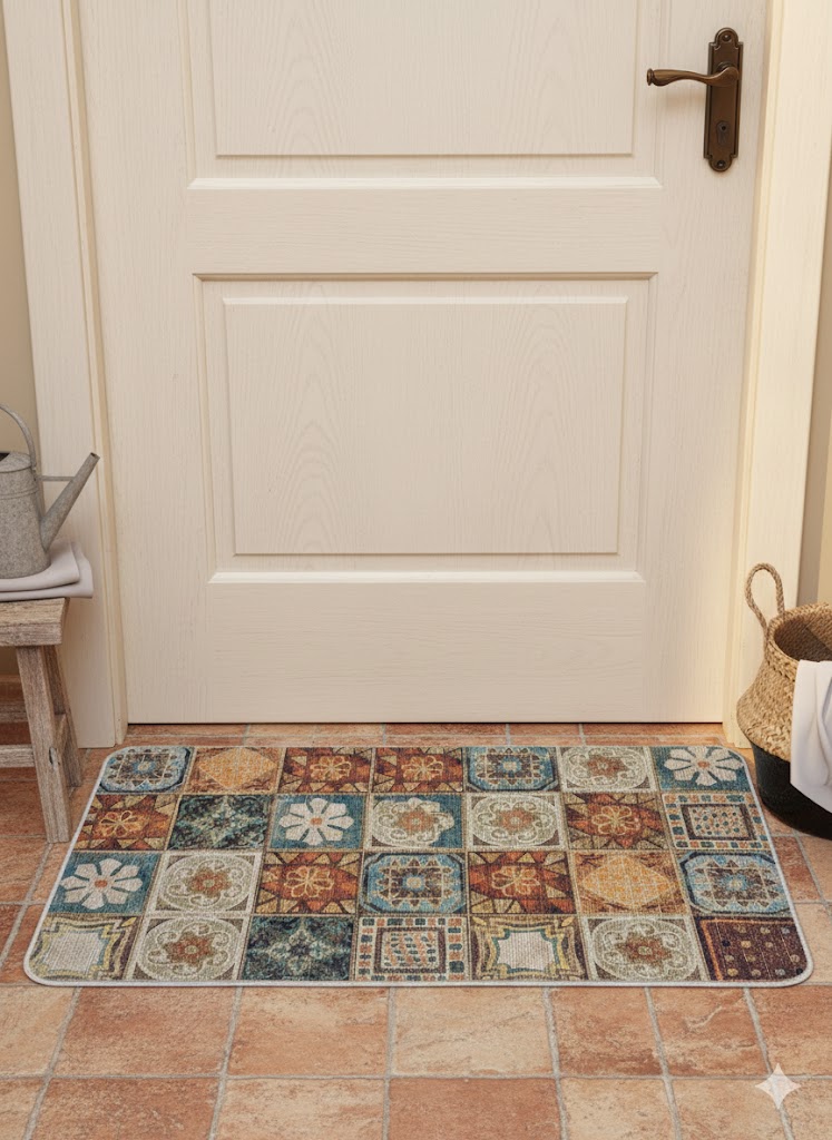 Infuse your home with a touch of global artistry and warmth. This premium floor mat features a sophisticated, multi-patterned design that blends traditional motifs with a cozy, farmhouse aesthetic, making it the perfect first impression for any room.