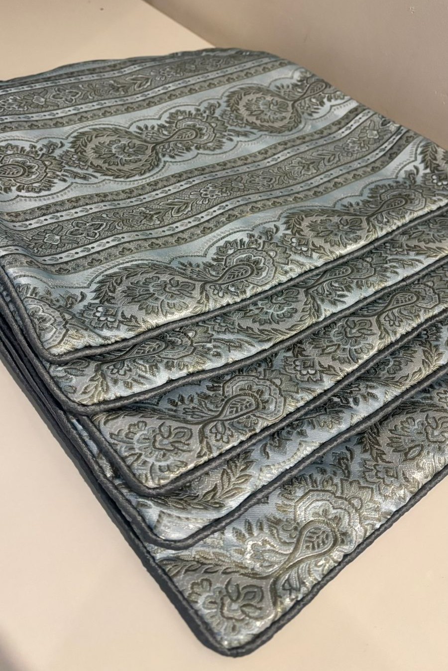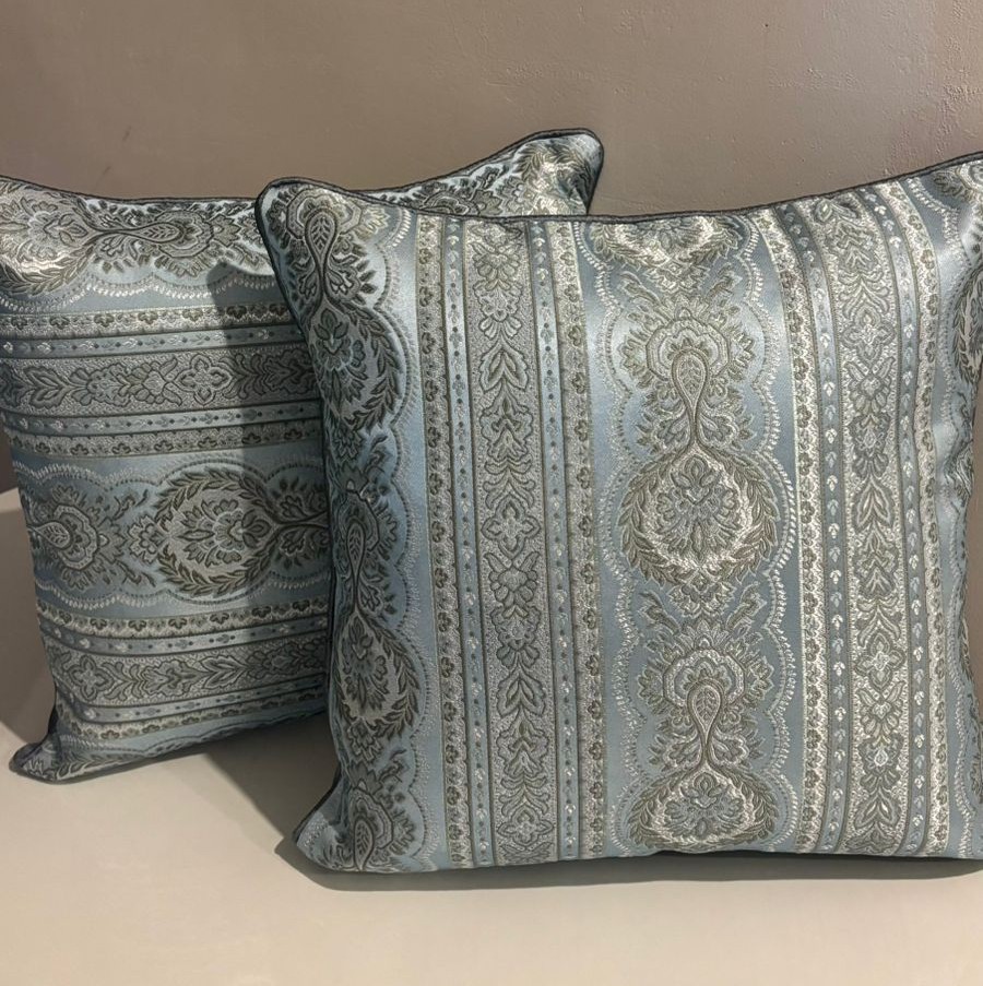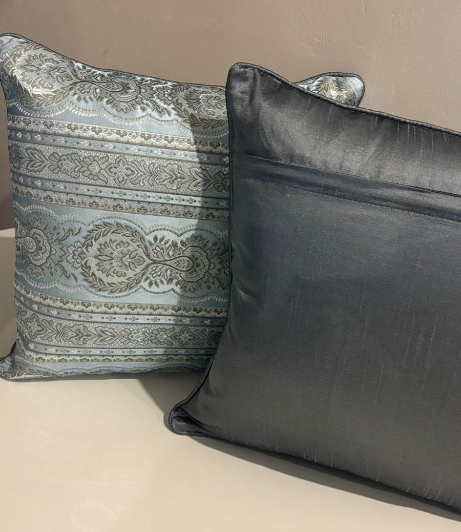 Be the first to review “Royal Heritage Jacquard Cushion Cover – Powder Blue & Silver Damask Lattice”