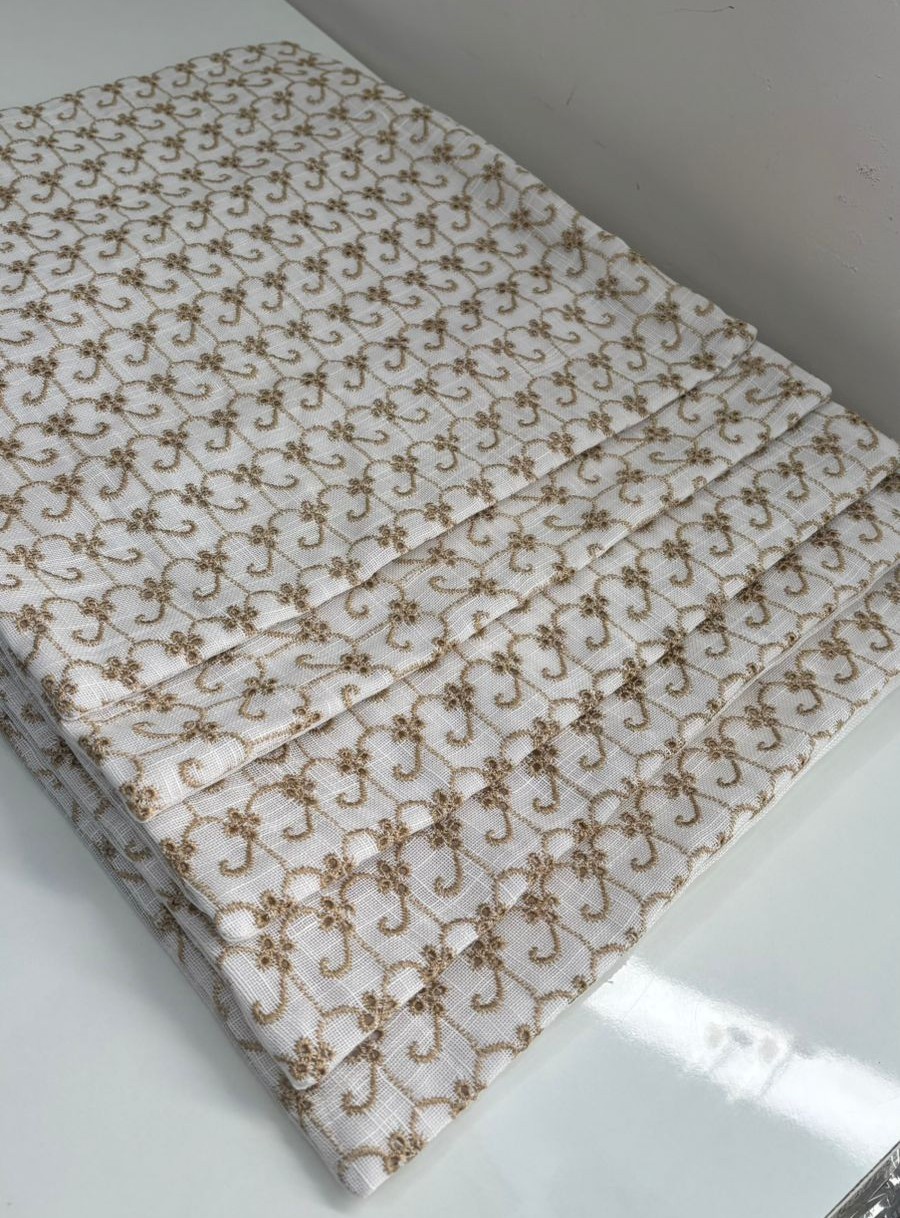 Enhance your interiors with this elegant cushion cover featuring a timeless trellis embroidery pattern in soft gold tones on an ivory base. The repeating motif adds a refined, symmetrical look that blends beautifully with modern, classic, and luxury décor styles. Crafted from a sturdy, textured base fabric, the dense embroidery creates a rich surface while maintaining durability and shape. Ideal for sofas, beds, and accent seating, this cushion cover brings understated sophistication to any space.