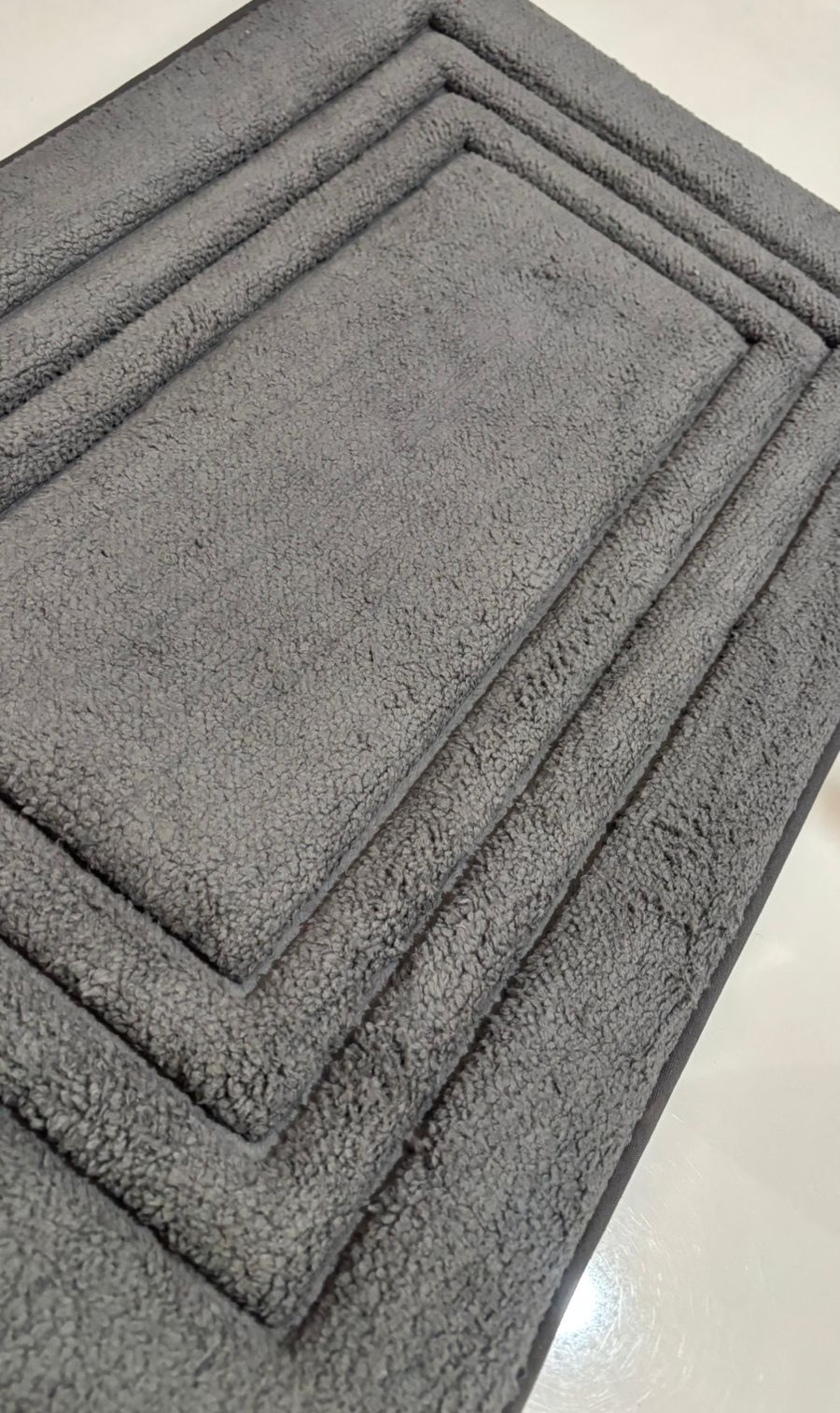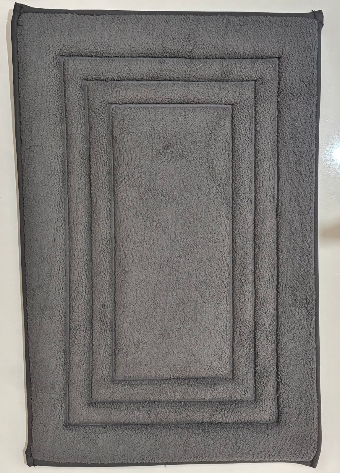 This floor mat features a timeless grey tone with a neat layered-border design that adds depth without overpowering your space. The plush, dense surface feels soft underfoot while helping absorb dust and light moisture, keeping your floors cleaner every day. Ideal for bedrooms, living areas, or entryways, it blends easily with modern and traditional interiors.