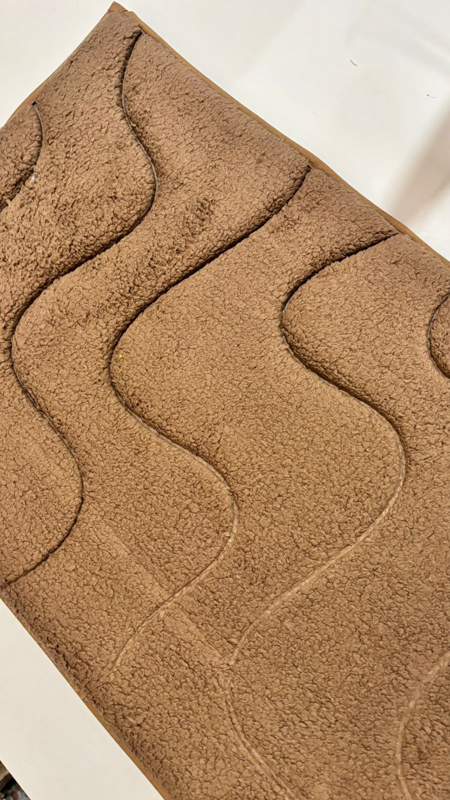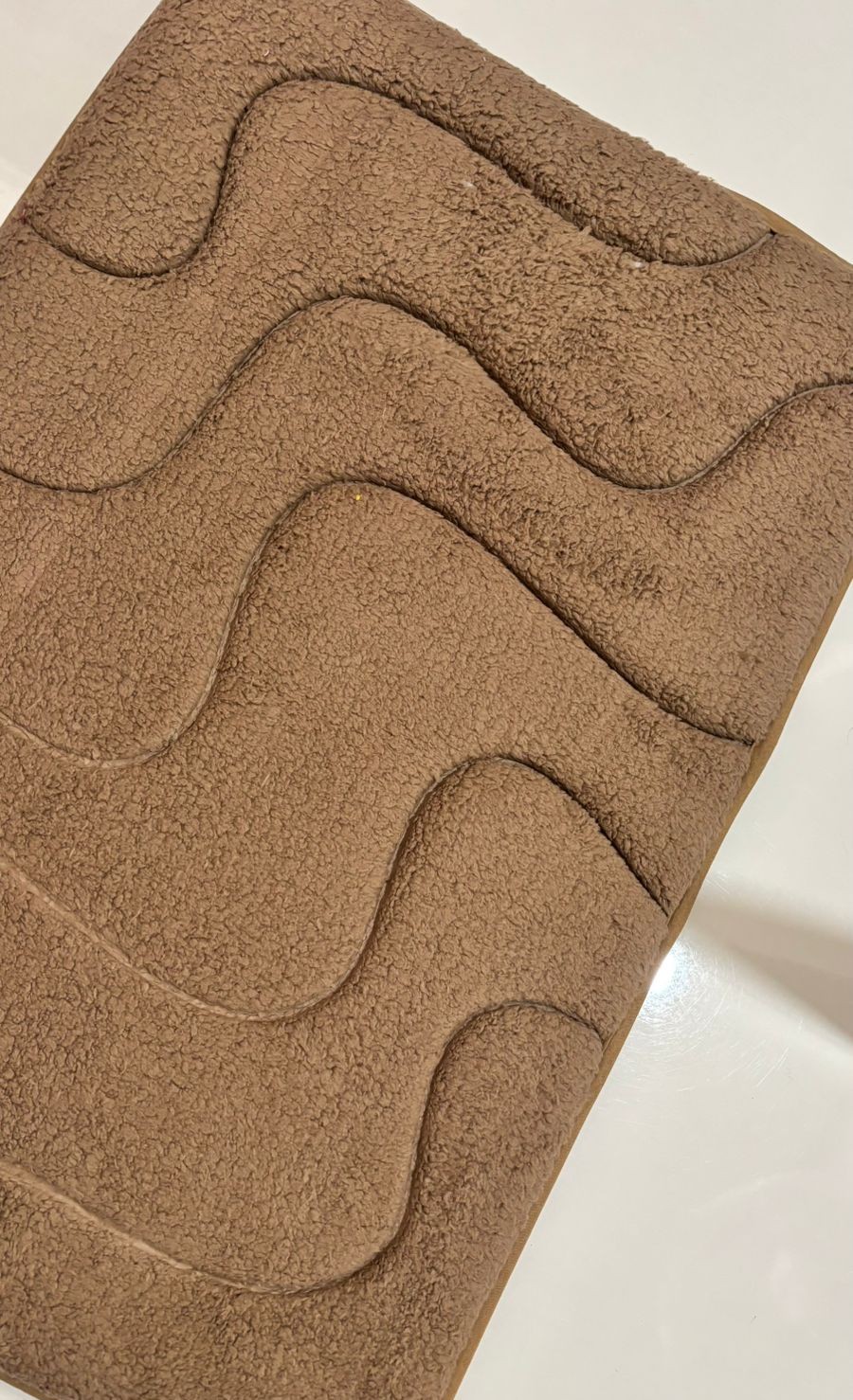 This floor mat is designed to give a soft and relaxing feel under your feet. The smooth wave pattern adds a modern and elegant look while helping to hold dust and small particles. Its neutral brown color blends easily with any home décor, making it perfect for bedrooms, living rooms, or near doors.