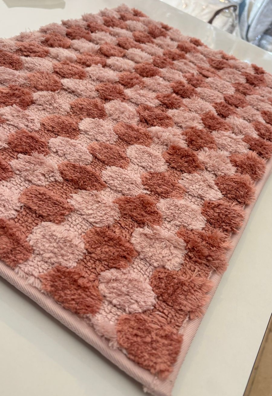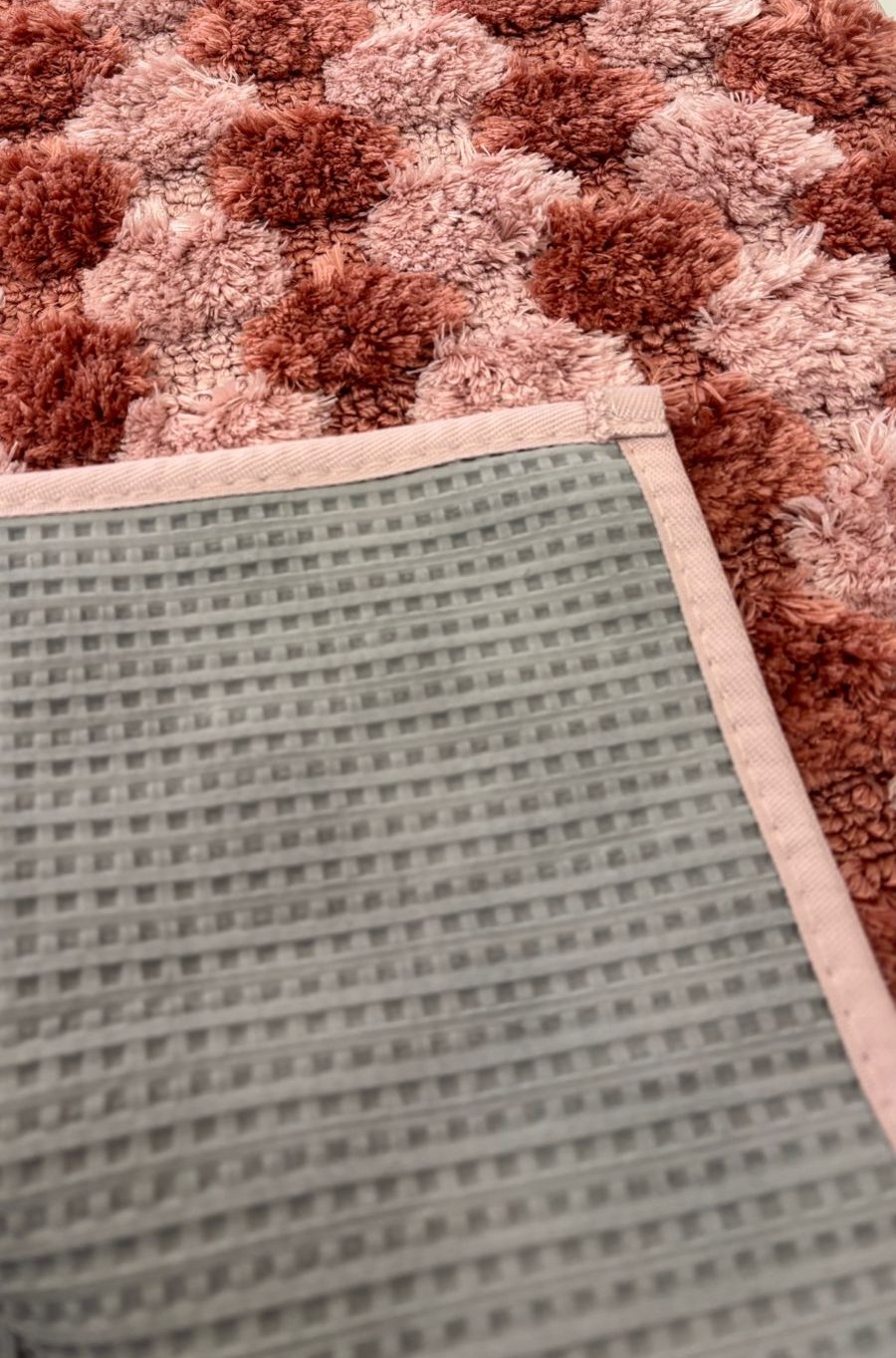 Add warmth and elegance to your space with this beautifully designed geometric floor mat. Featuring a plush raised pattern, this mat offers a soft and cushioned feel underfoot while enhancing the look of your home. The alternating tones create a modern yet cozy appearance, making it ideal for bedrooms, living areas, bathrooms, or entryways.