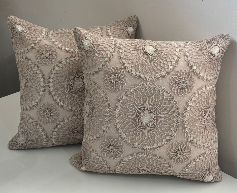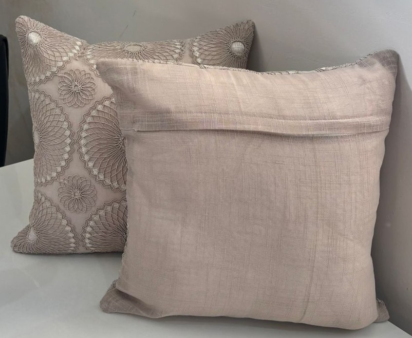 Add a touch of refined elegance to your home décor with this beautifully crafted cushion cover. Featuring an intricate geometric floral embroidery pattern in soft beige and taupe tones, it creates a subtle yet luxurious visual appeal. Made from high-quality upholstery fabric, the raised embroidery adds rich texture and depth while maintaining durability. Its neutral palette and sophisticated design make it a perfect accent for sofas, beds, and lounge seating in both modern and classic interiors.