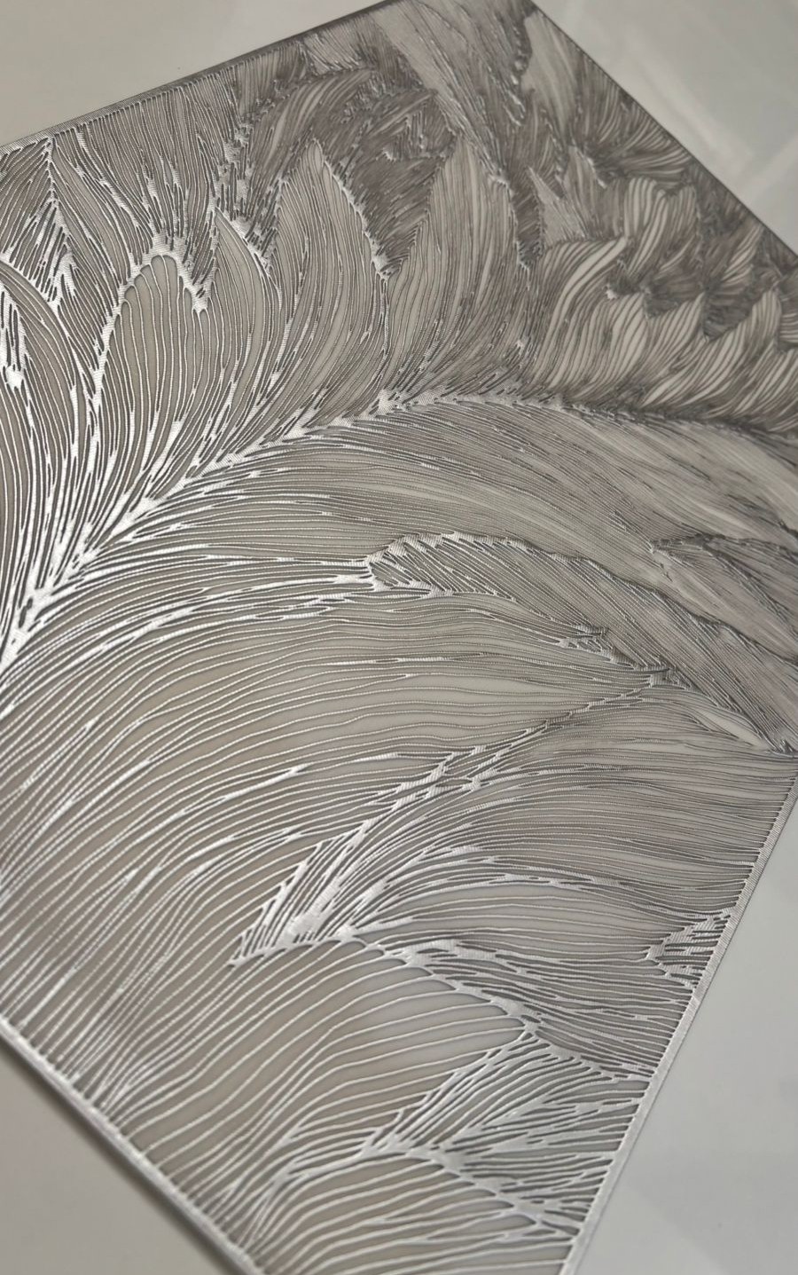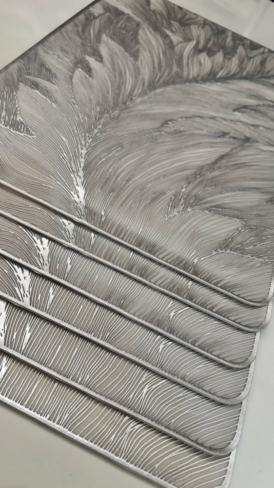 This table mat brings a sense of quiet luxury to your dining space with its flowing feather-inspired texture. The delicate raised lines create a natural movement across the surface, giving the mat a soft, artistic appearance while maintaining a modern look. Its neutral tone blends effortlessly with any table setting, making it a versatile choice for both everyday meals and special gatherings.