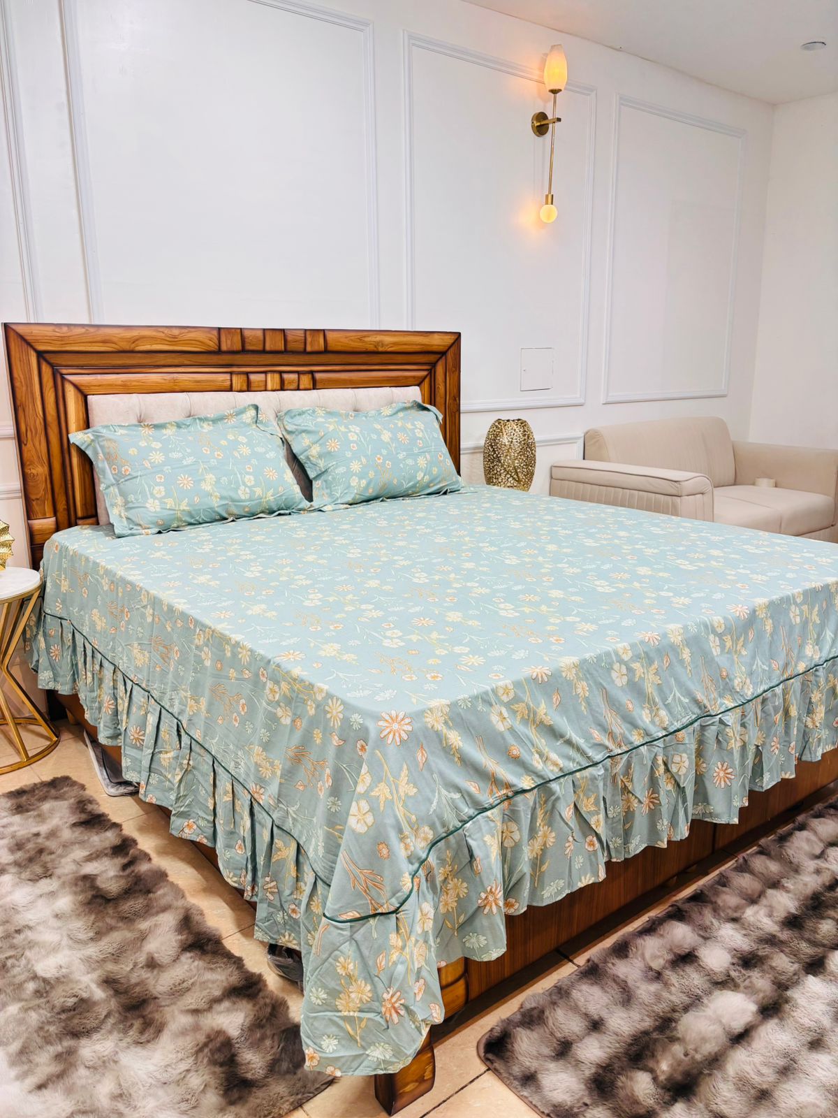 Elegant Floral Frill Bedsheet 😍 Soft Pastel Luxury for Your Bedroom