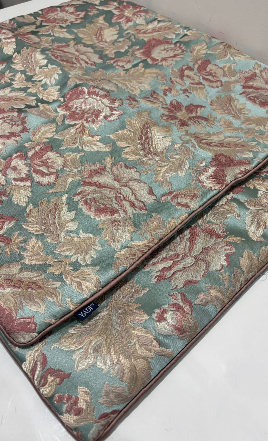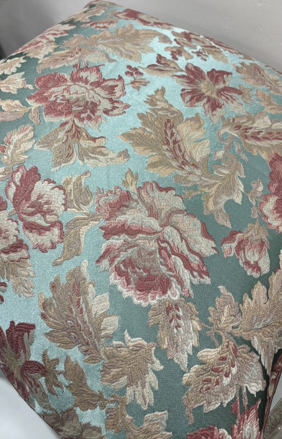 Add a touch of timeless charm to your interiors with this beautifully designed cushion cover featuring an all-over vintage floral pattern. Set against a soothing pastel aqua base, the intricate floral motifs in muted rose and beige tones create a graceful, elegant look. The classic design brings warmth and softness, making it a perfect accent for sofas, beds, or cozy seating areas.