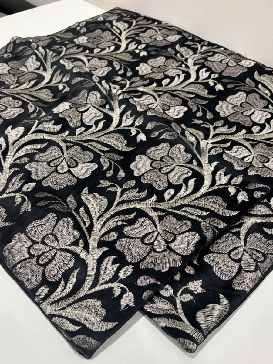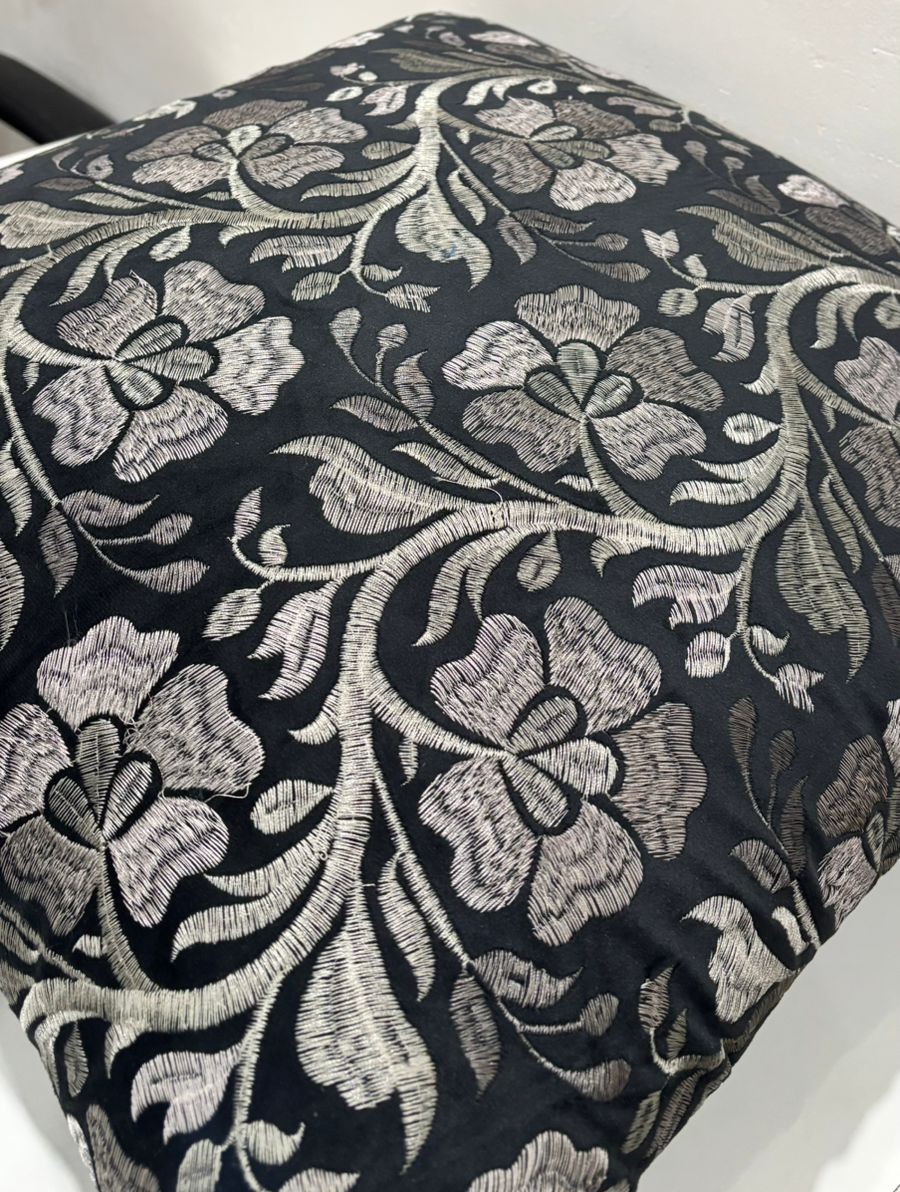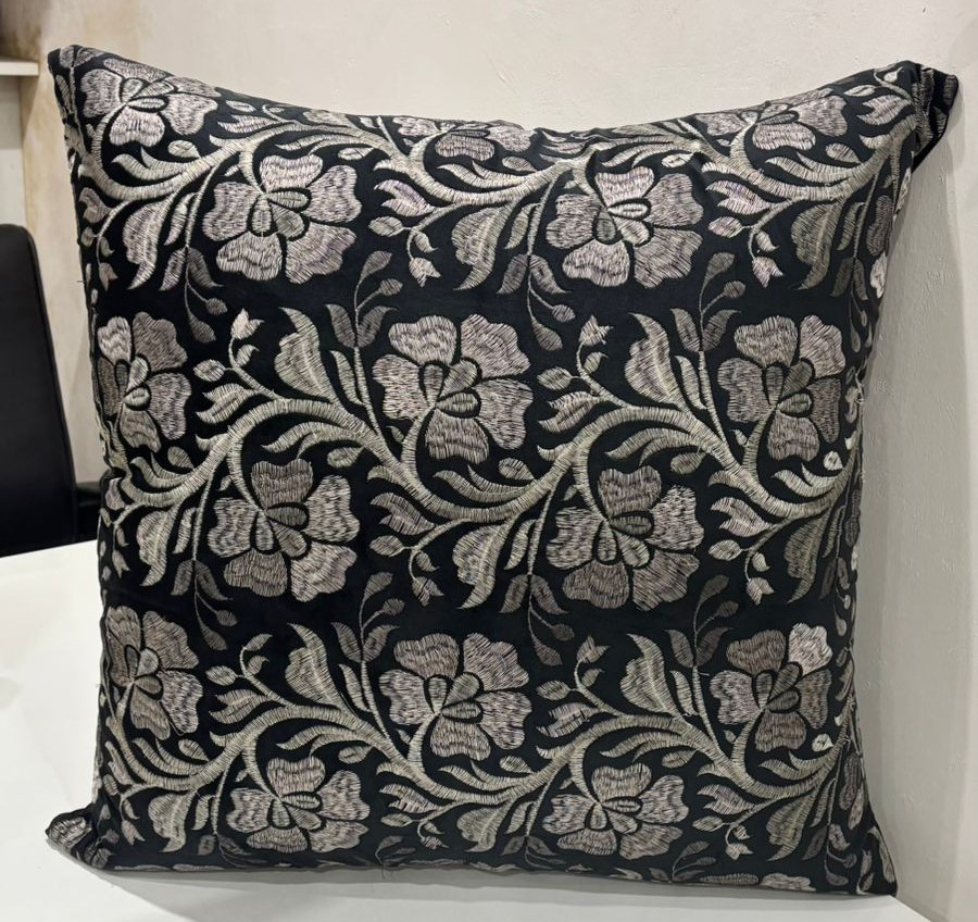 Add a touch of timeless elegance to your living space with this beautifully woven cushion cover. Featuring an all-over floral vine pattern, the intricate detailing stands out gracefully against the deep black base, creating a striking monochrome contrast. The flowing floral design brings a sense of movement and sophistication, making it an eye-catching accent for sofas, armchairs, or beds.