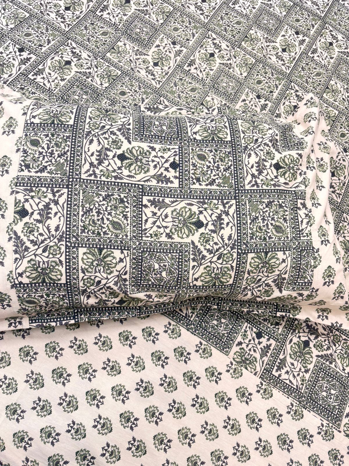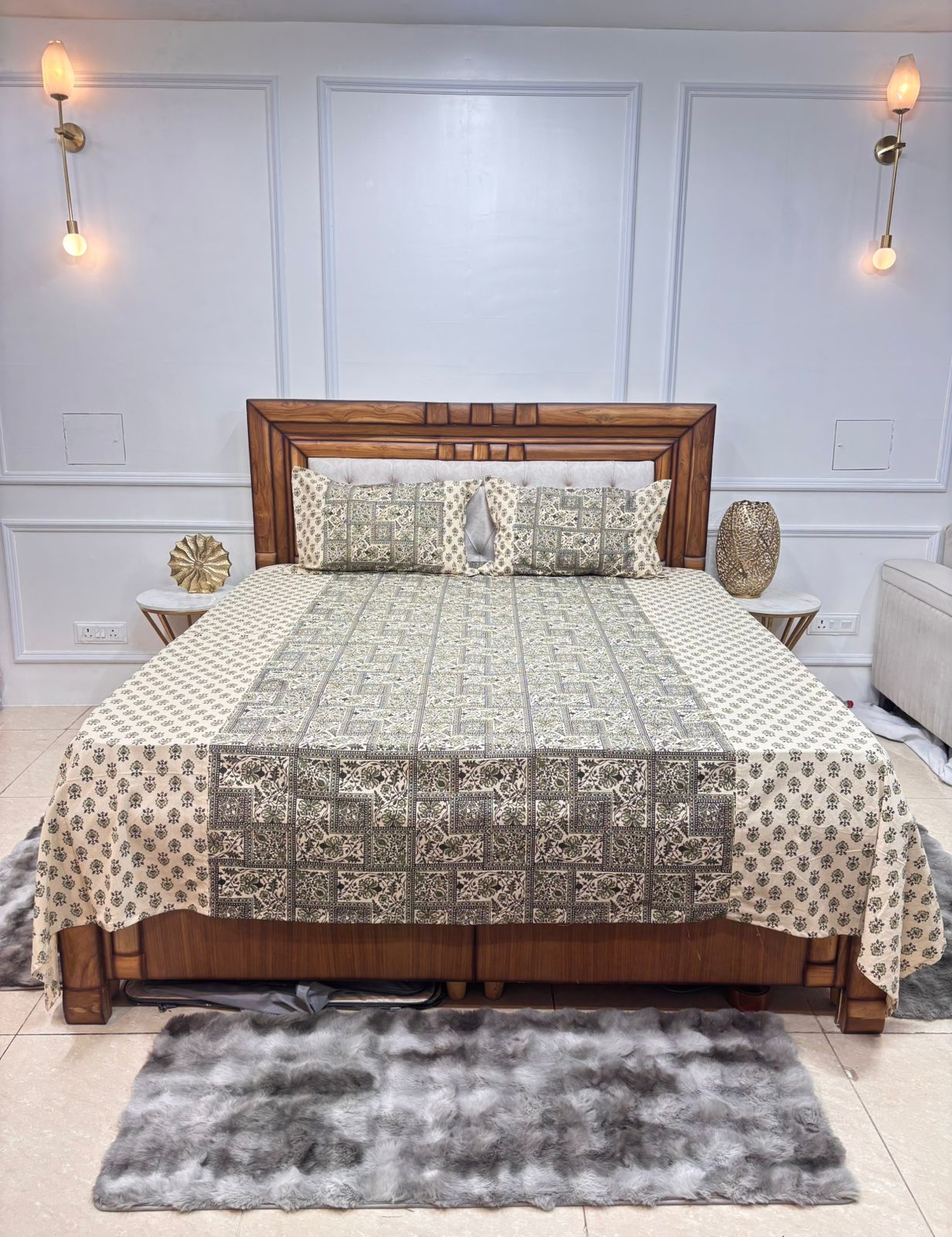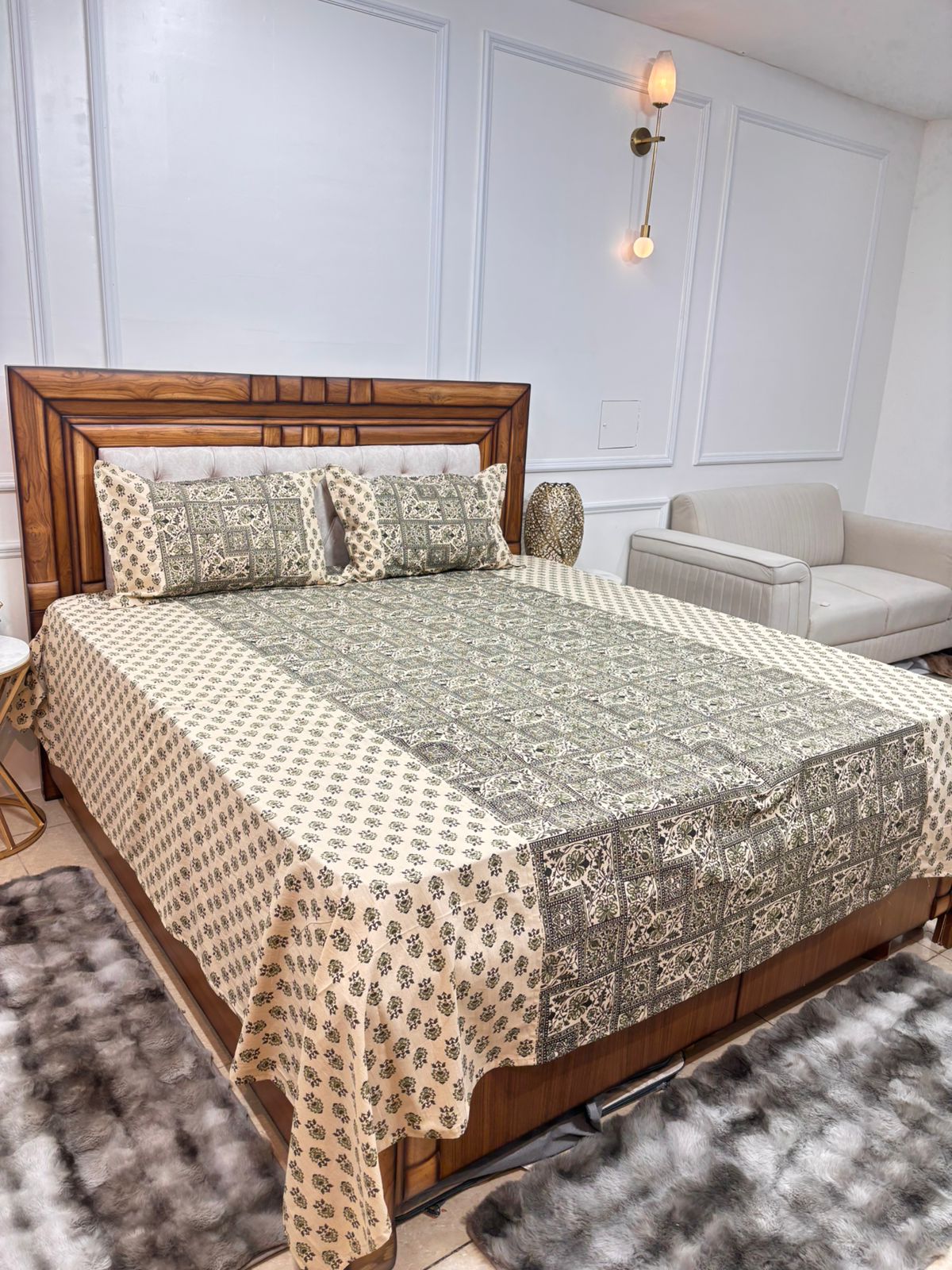 Add subtle charm to your bedroom with this beautifully designed printed bedsheet π€β¨ Featuring a clean base with delicate ethnic-inspired patterns, it brings a calm and sophisticated vibe to your space. The minimal design makes it perfect for those who love simple yet classy interiors, while the coordinated pillow covers complete the overall look with a neat and stylish finish.