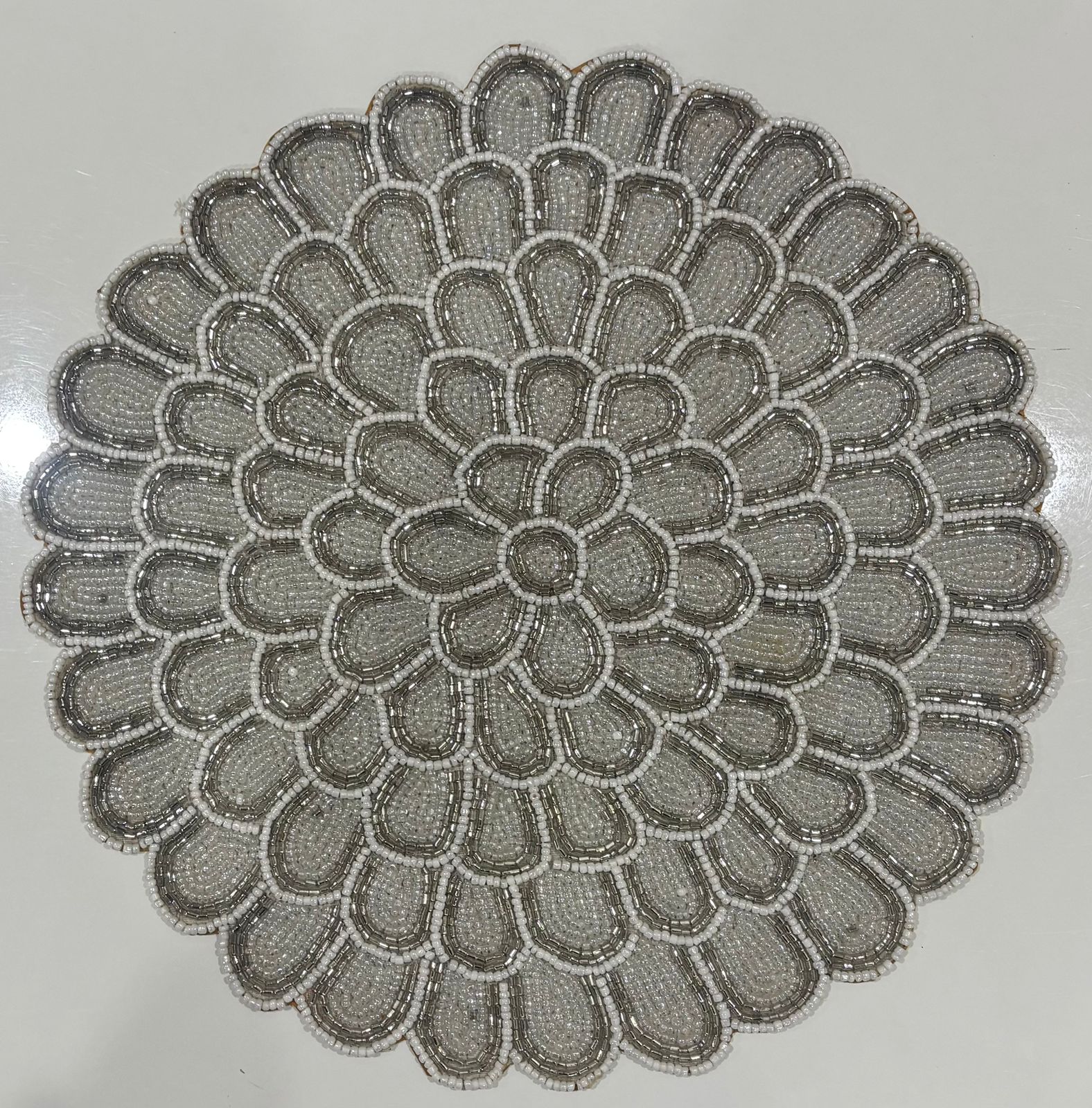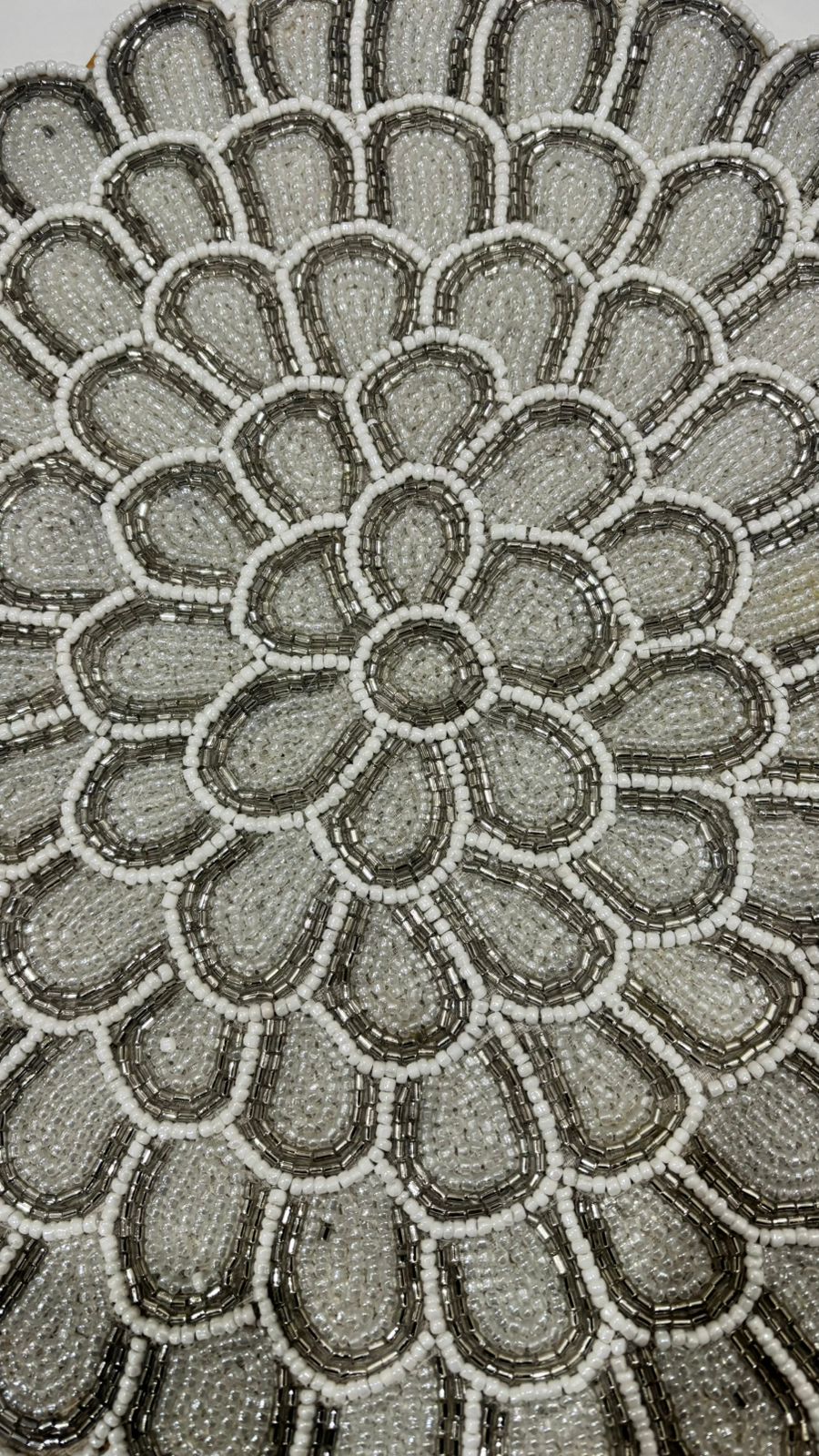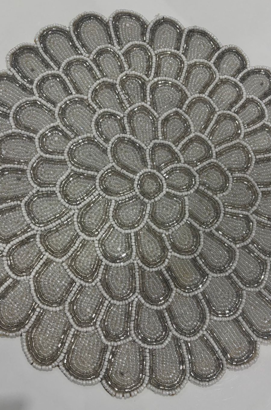 Be the first to review “Elegant Silver Hand-Beaded Floral Table Mat”