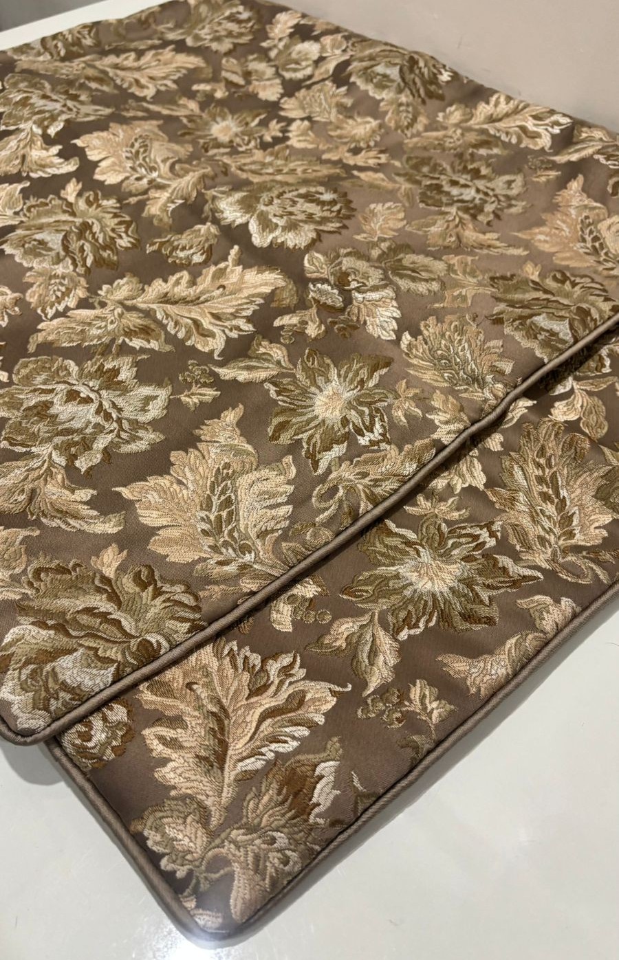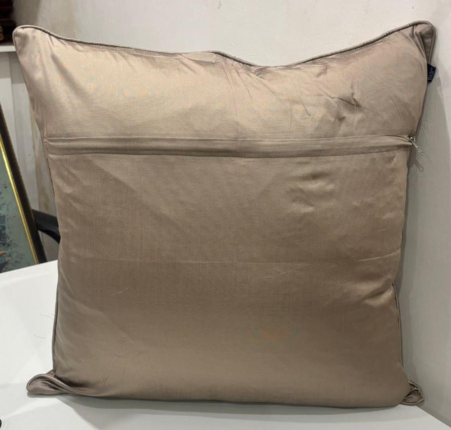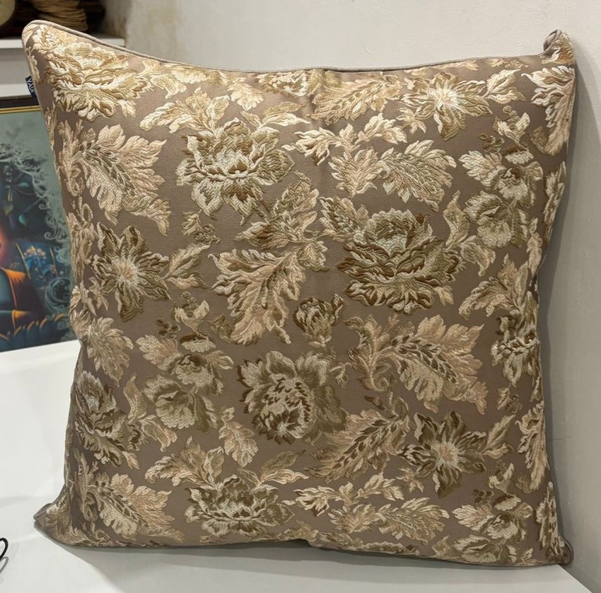 Enhance your home décor with this elegant taupe cushion cover, beautifully adorned with intricate gold floral woven patterns. The soft neutral base paired with rich metallic detailing creates a sophisticated and timeless look, ideal for living rooms, bedrooms, and formal seating spaces.