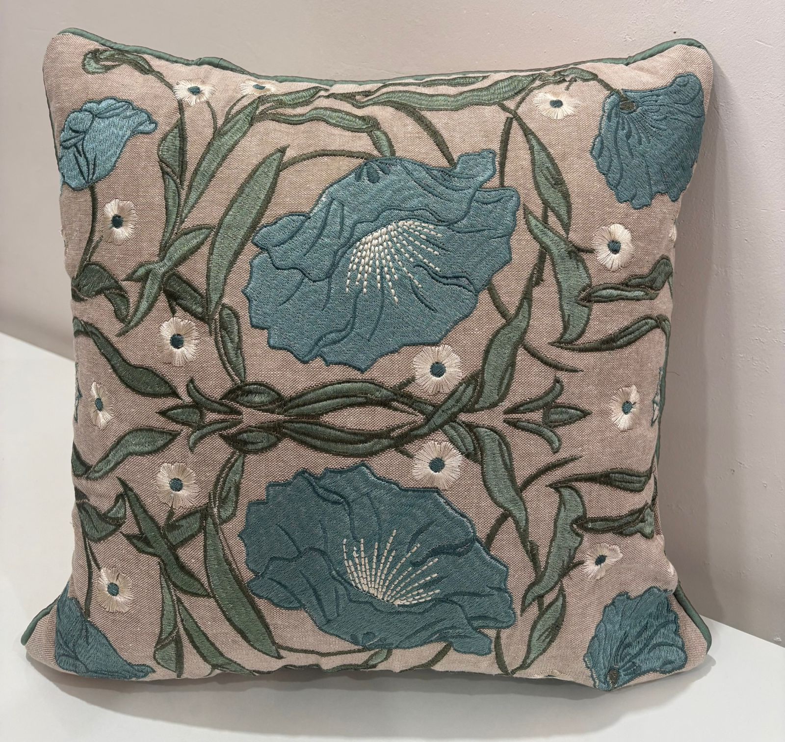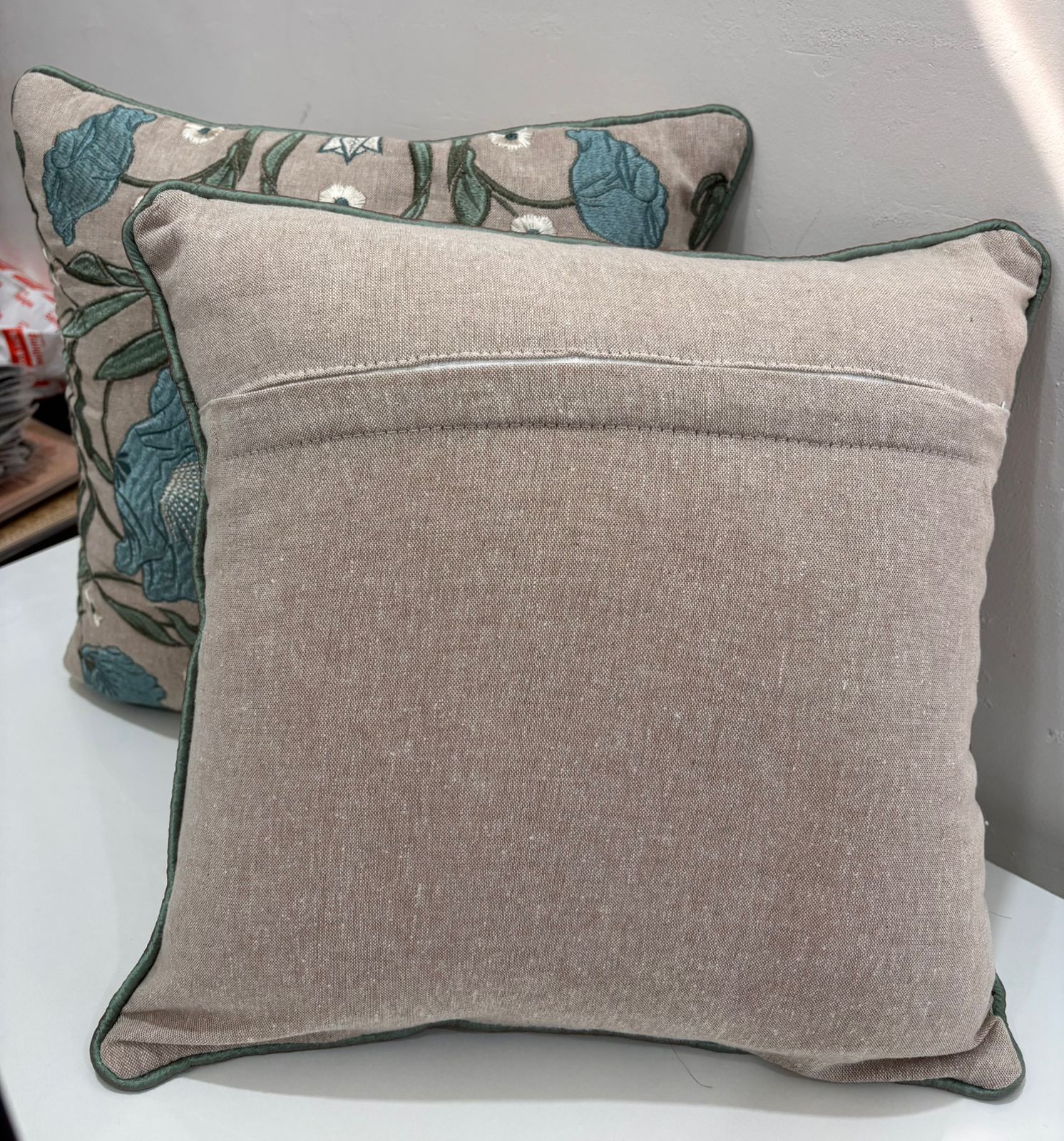 Add a touch of timeless elegance to your living space with this beautifully embroidered cushion cover. Designed on a soft neutral base, the intricate teal and green floral embroidery creates a rich, handcrafted look that instantly elevates your décor. Made from durable fabric with fine detailing, it offers both visual appeal and everyday comfort.