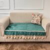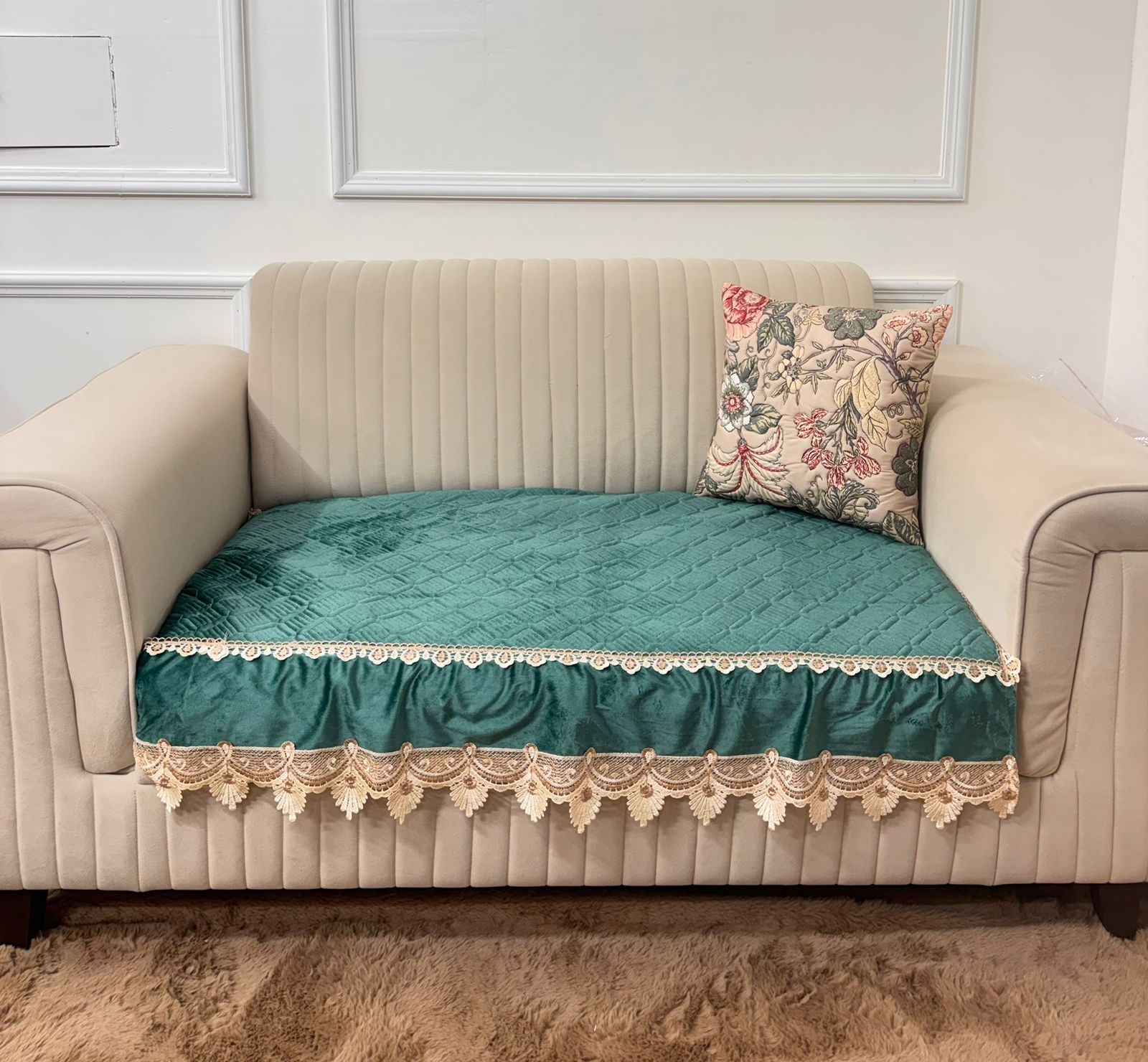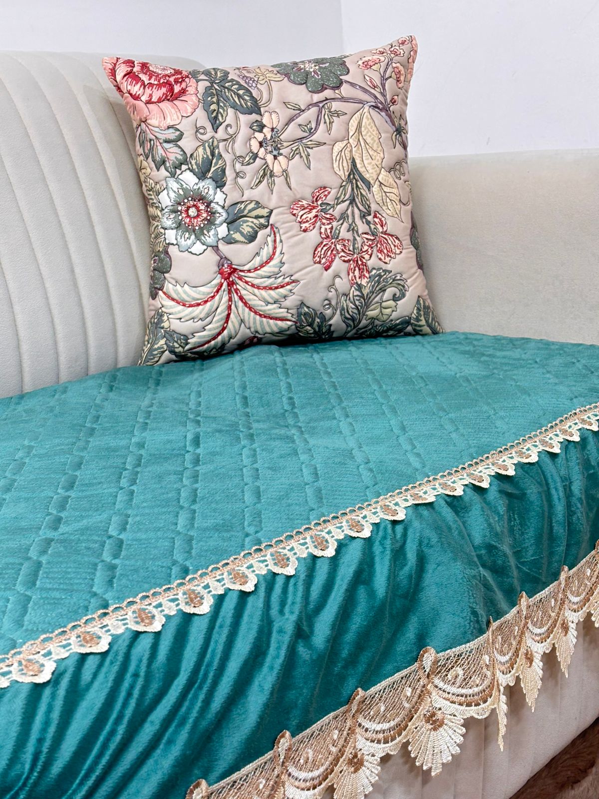 Infuse your home with the calming yet majestic energy of the forest. Our Enchanted Emerald sofa protector is a bold style statement, combining a deep, jewel-toned teal with a high-contrast golden lace that exudes luxury and artisanal craftsmanship.