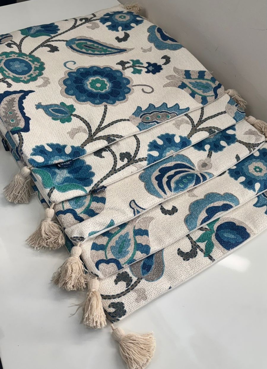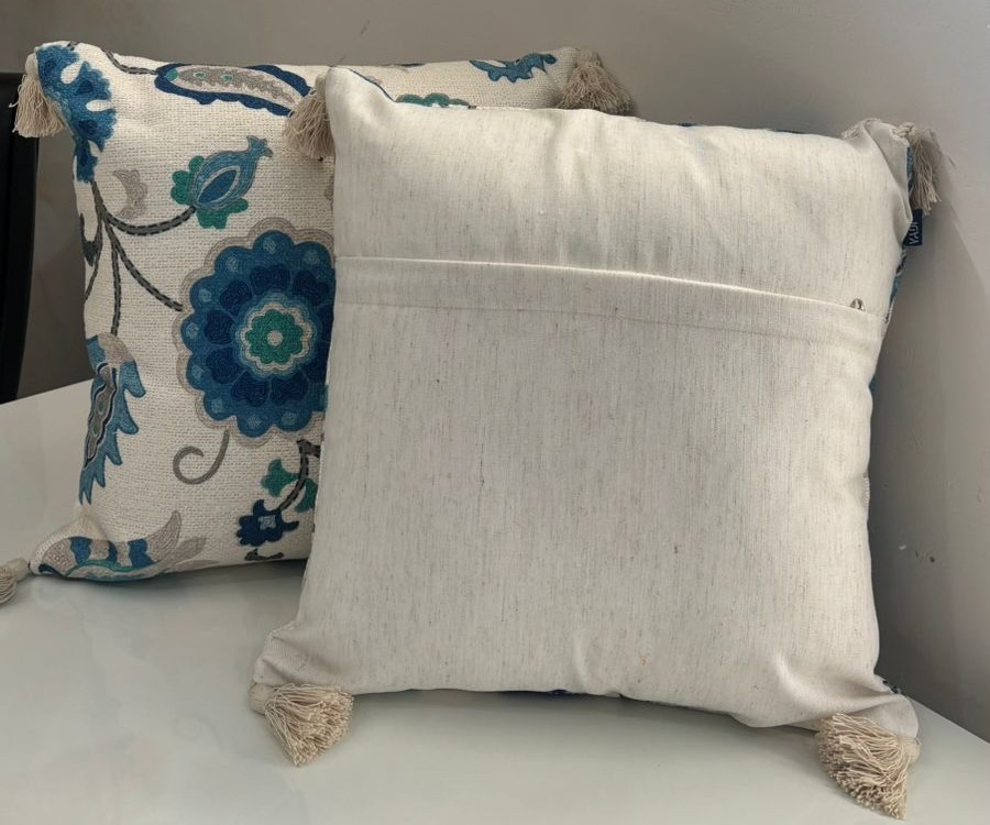Be the first to review “Floral Blue Handloom-Style Cotton Cushion Cover with Tassels”