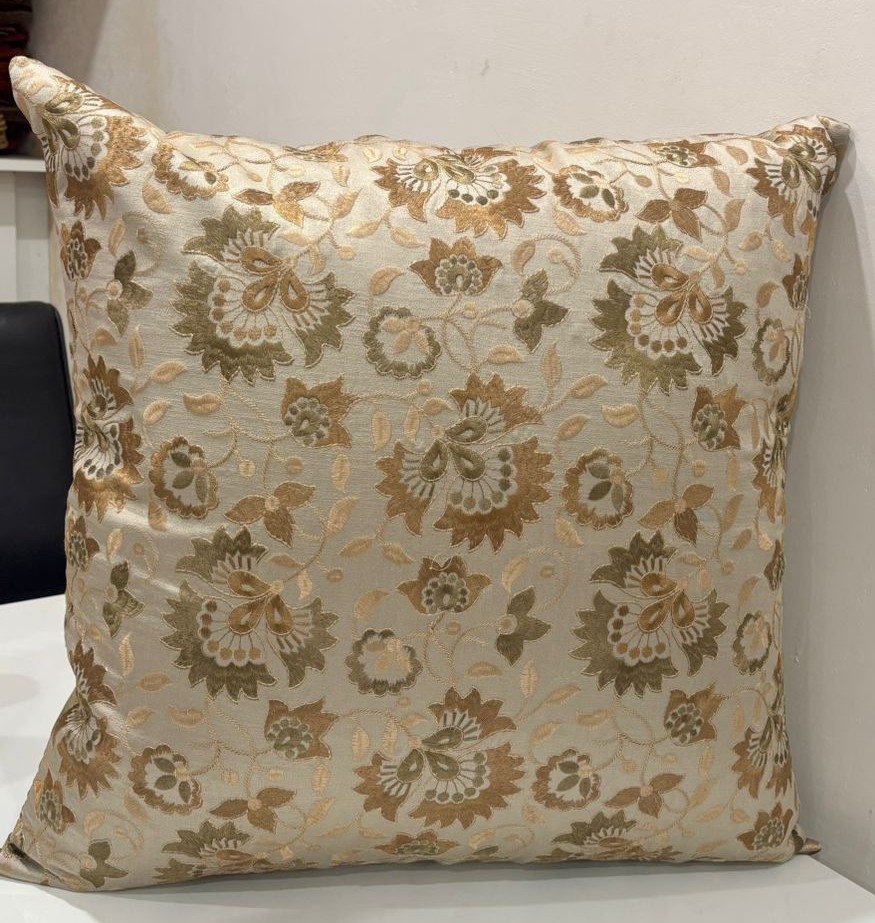 Bring a touch of refined elegance to your décor with this beautifully crafted cushion cover. Featuring an intricate floral jacquard design in warm golden and beige tones, it adds depth, texture, and a graceful charm to sofas, beds, or accent chairs. The woven pattern catches light softly, creating a rich, premium look without being overpowering.