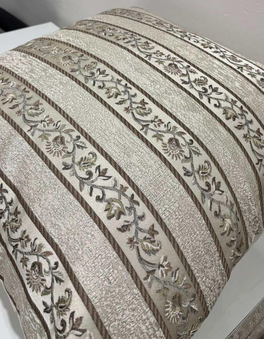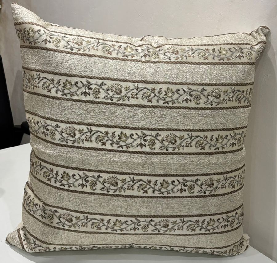 Add a refined and timeless touch to your décor with this beautifully designed cushion cover. Featuring graceful horizontal floral stripes woven across a soft neutral base, this cushion cover reflects classic heritage-inspired charm. The delicate vine and floral detailing creates a rich visual texture, while the calm beige and ivory tones bring warmth and sophistication to any space.