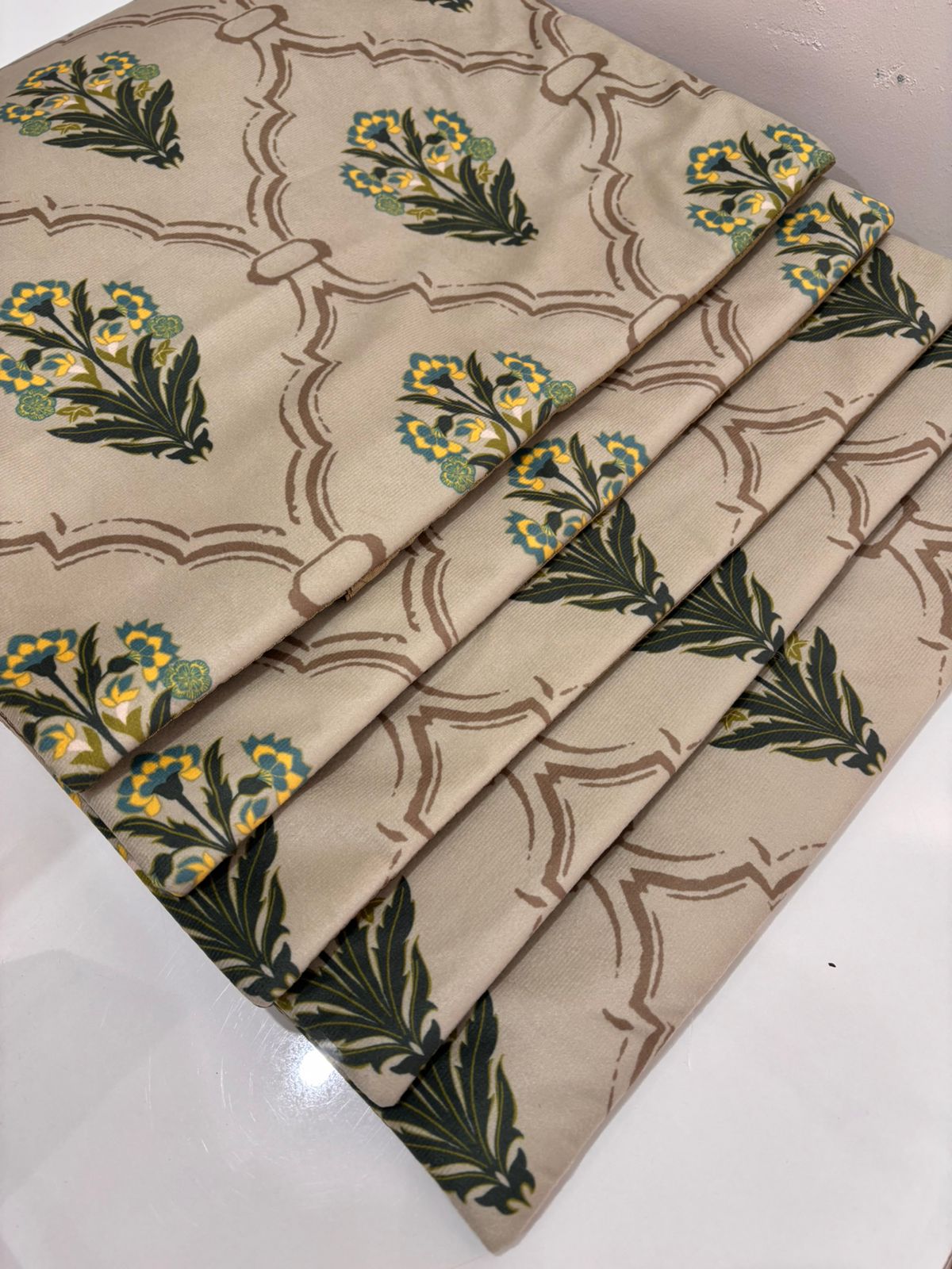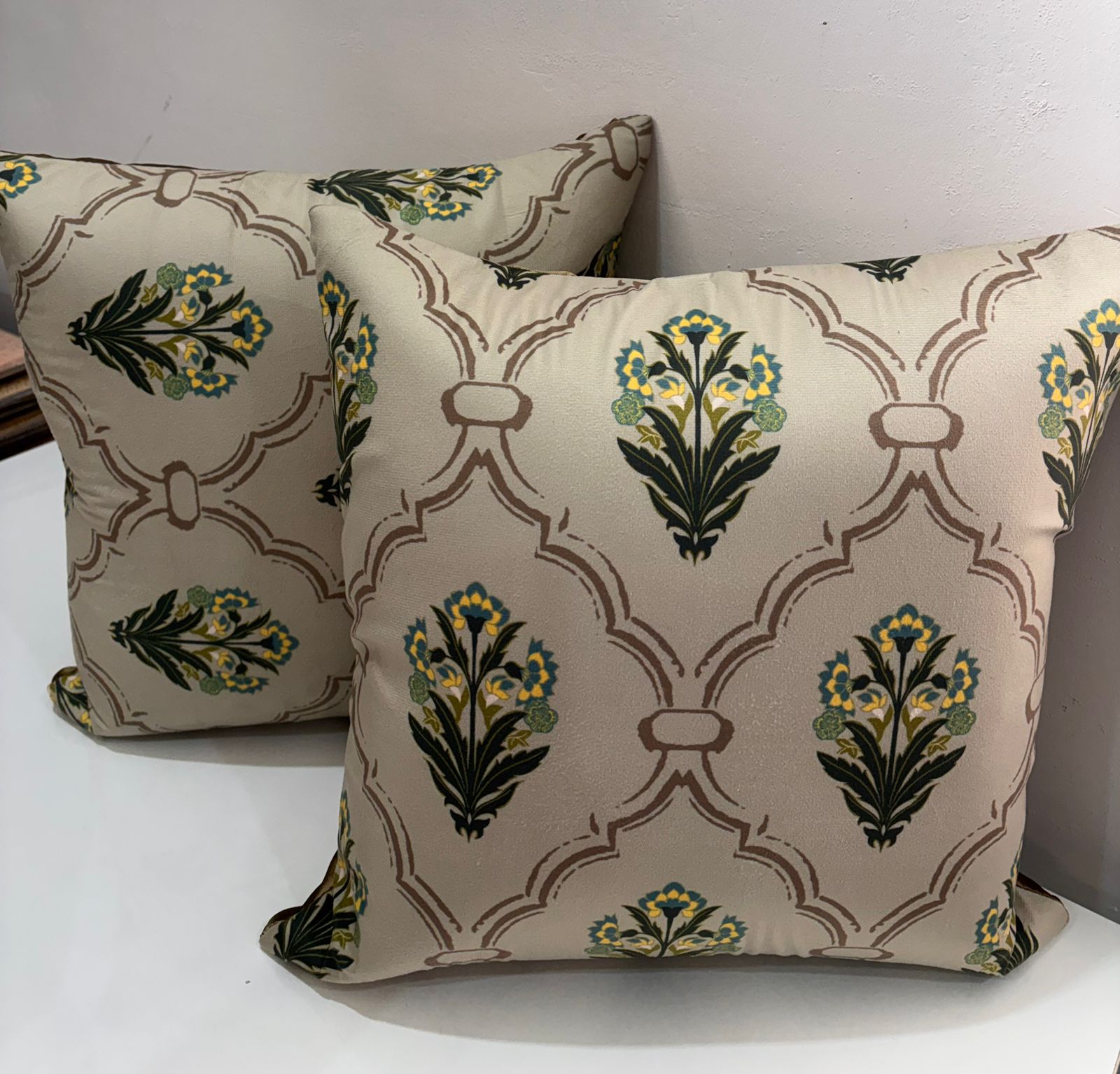 Bring a touch of regal serenity to your home with our Imperial Teal & Ochre Mughal Lattice Cushion Cover. This design pairs traditional architectural elements with a sophisticated, earthy color palette to create a statement piece for any room.