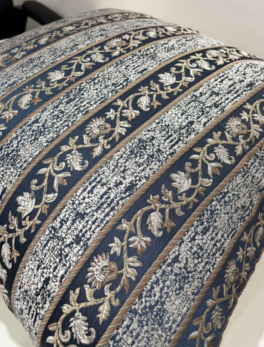 Bring timeless elegance to your living space with this refined cushion cover featuring deep indigo blue bands paired with ivory and beige textured stripes. Delicate floral embroidery running across the horizontal panels adds a handcrafted, regal touch, while the balanced colour palette keeps the look calm and sophisticated.