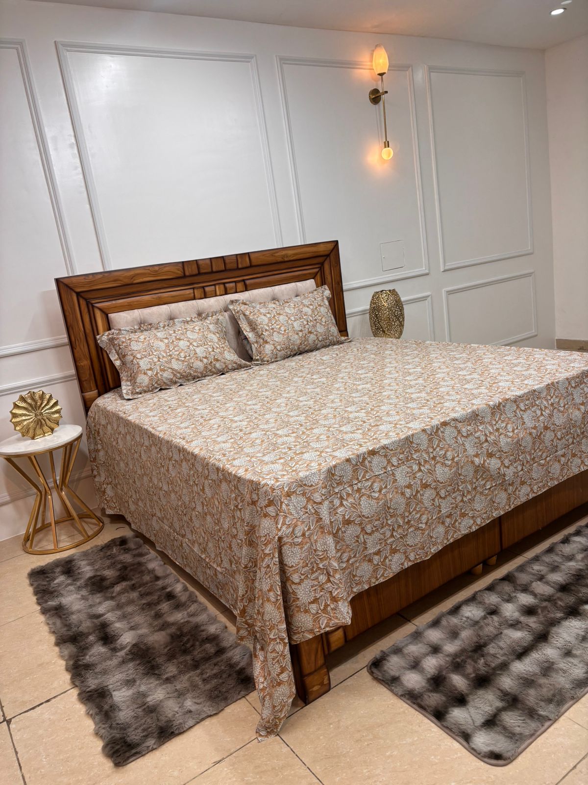 Be the first to review “LUXURY BEIGE FLORAL PRINTED COTTON BEDSHEET SET”