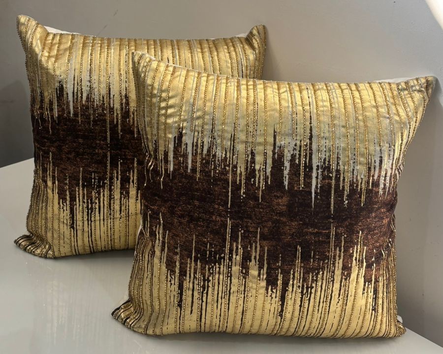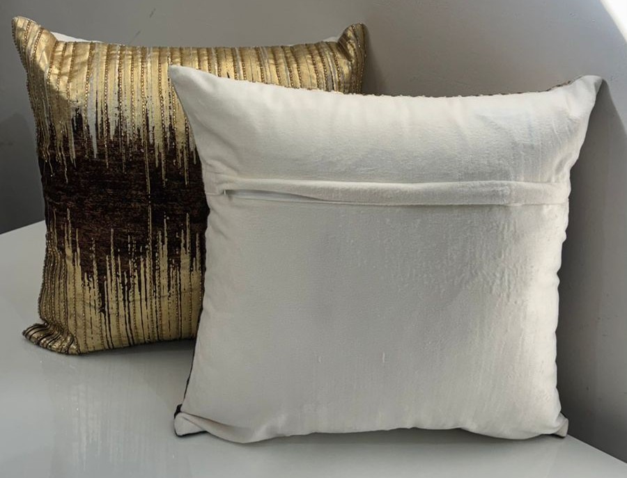 Add a touch of elegance to your living space with this luxurious cushion cover, crafted from premium velvet fabric. Featuring a rich gold and deep brown abstract drip pattern with a subtle metallic sheen, it brings a modern yet opulent look to sofas, beds, and accent chairs. The soft velvet texture offers both comfort and style, making it perfect for contemporary and festive décor. Durable stitching and a refined finish ensure long-lasting beauty and easy maintenance.