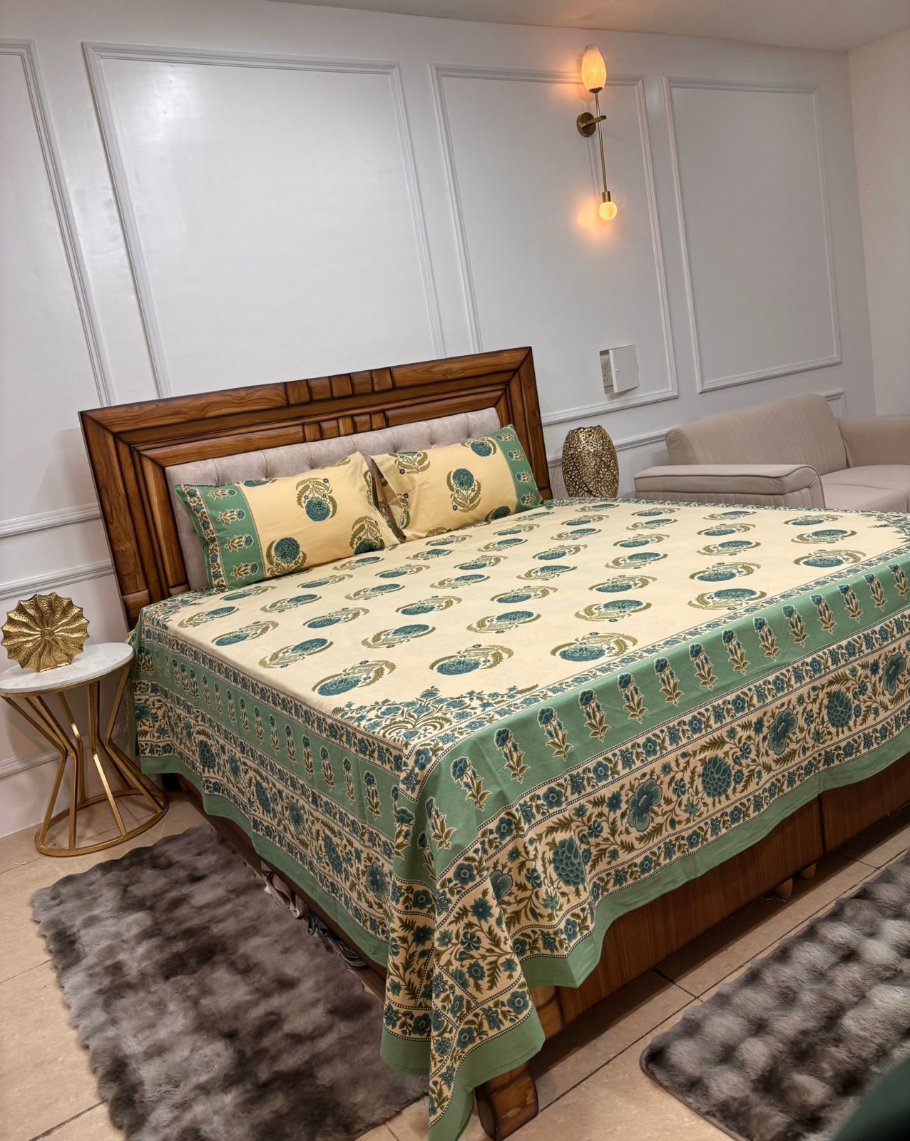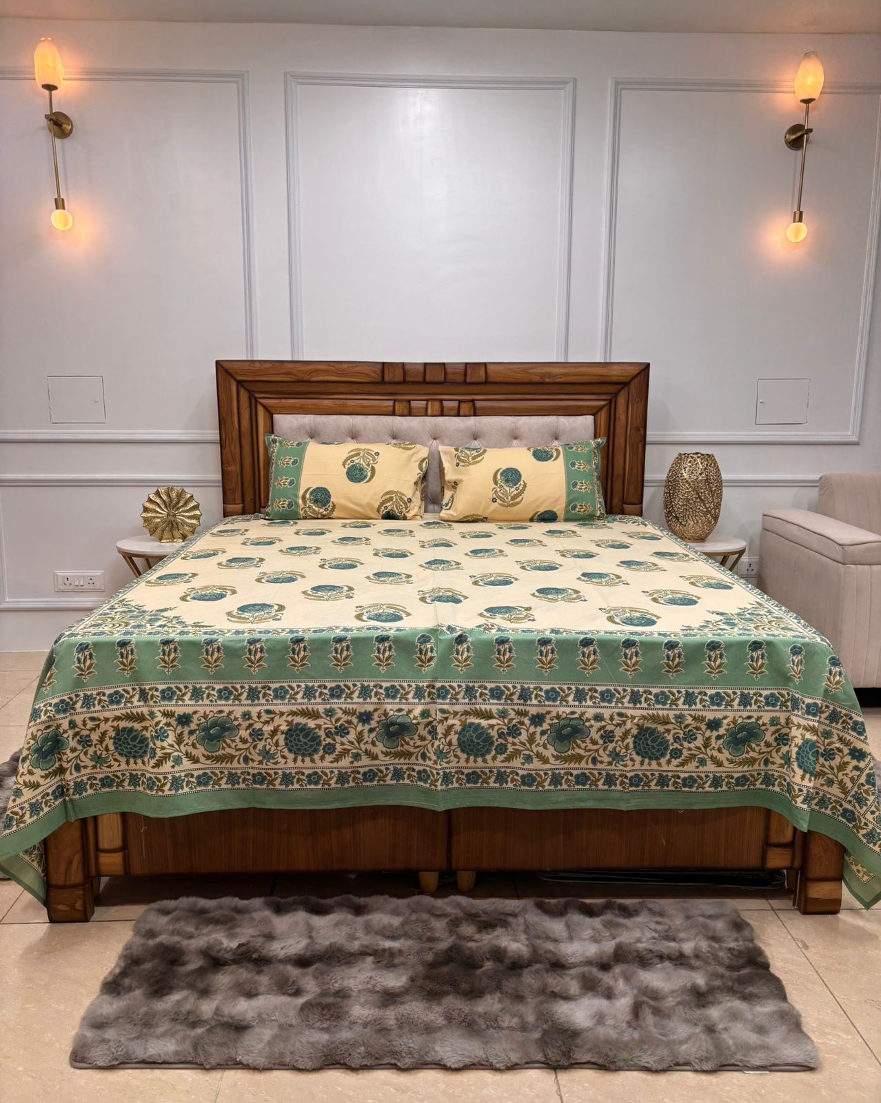 - Hand block printed