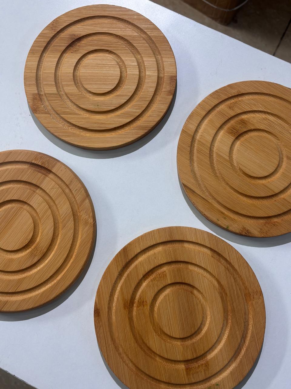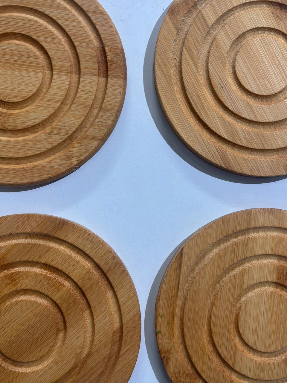 Enhance your dining presentation with this beautifully crafted round bamboo table mat, designed with elegant concentric circular grooves for a stylish and functional touch. Made from high-quality natural bamboo, this mat showcases a smooth finish with a warm wooden texture that adds a sophisticated and eco-friendly charm to your table setting.