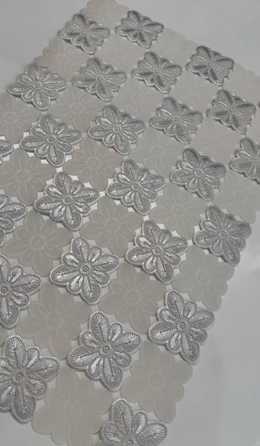 Royal Floral Embossed Luxury Dining Table Mat with Elegant Silver Detailing