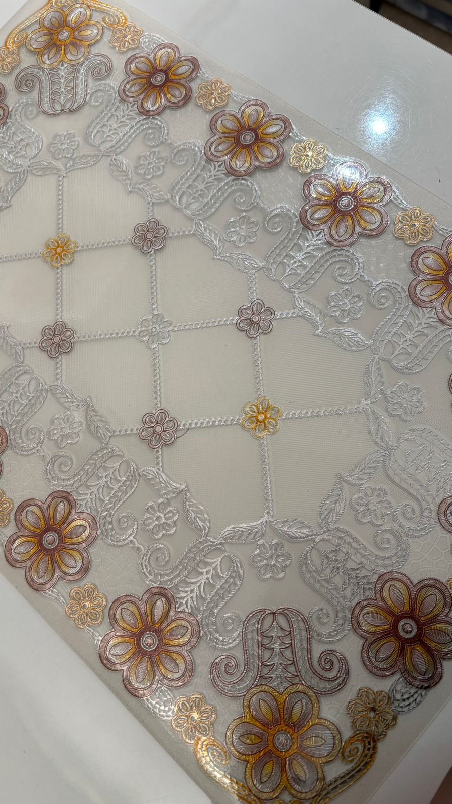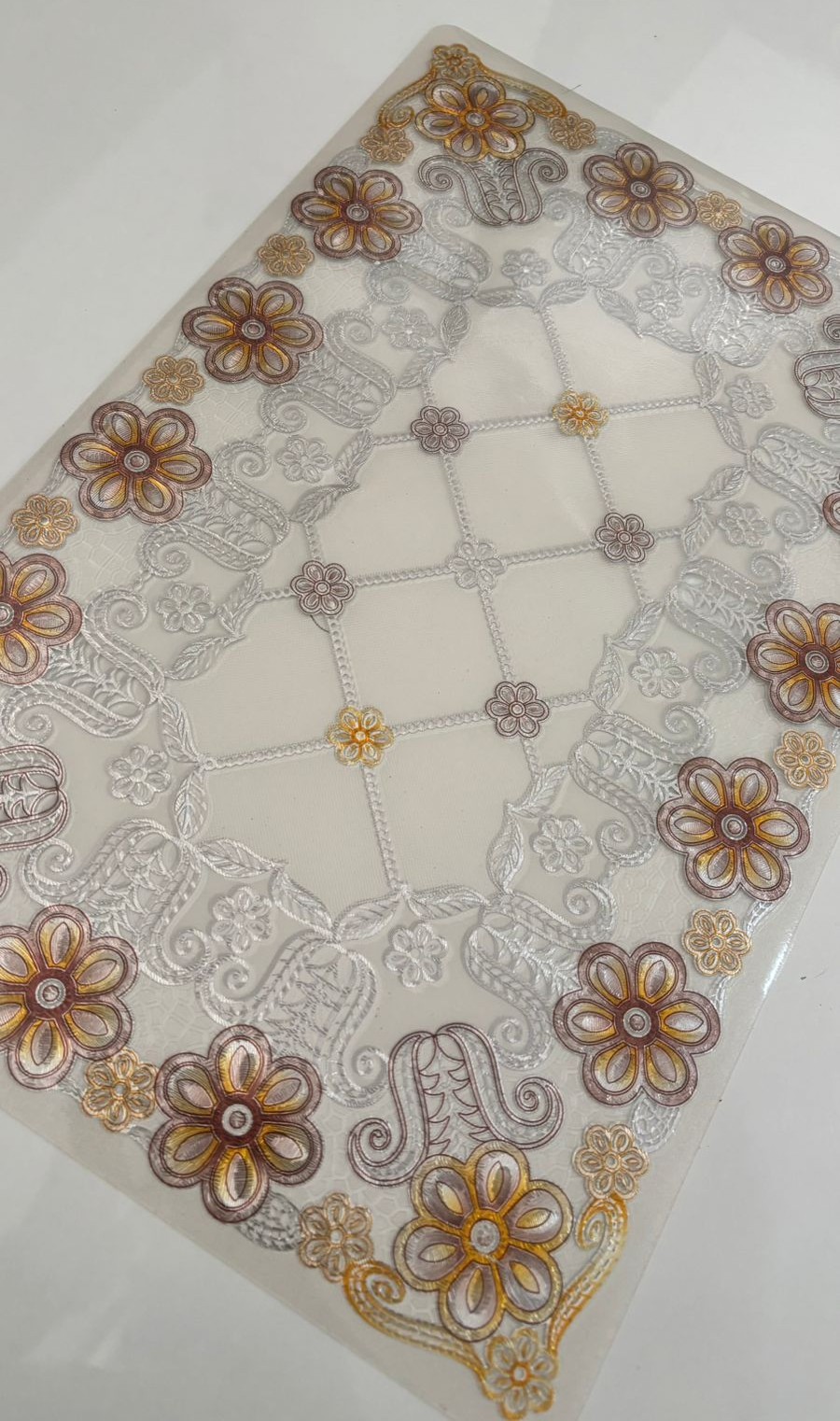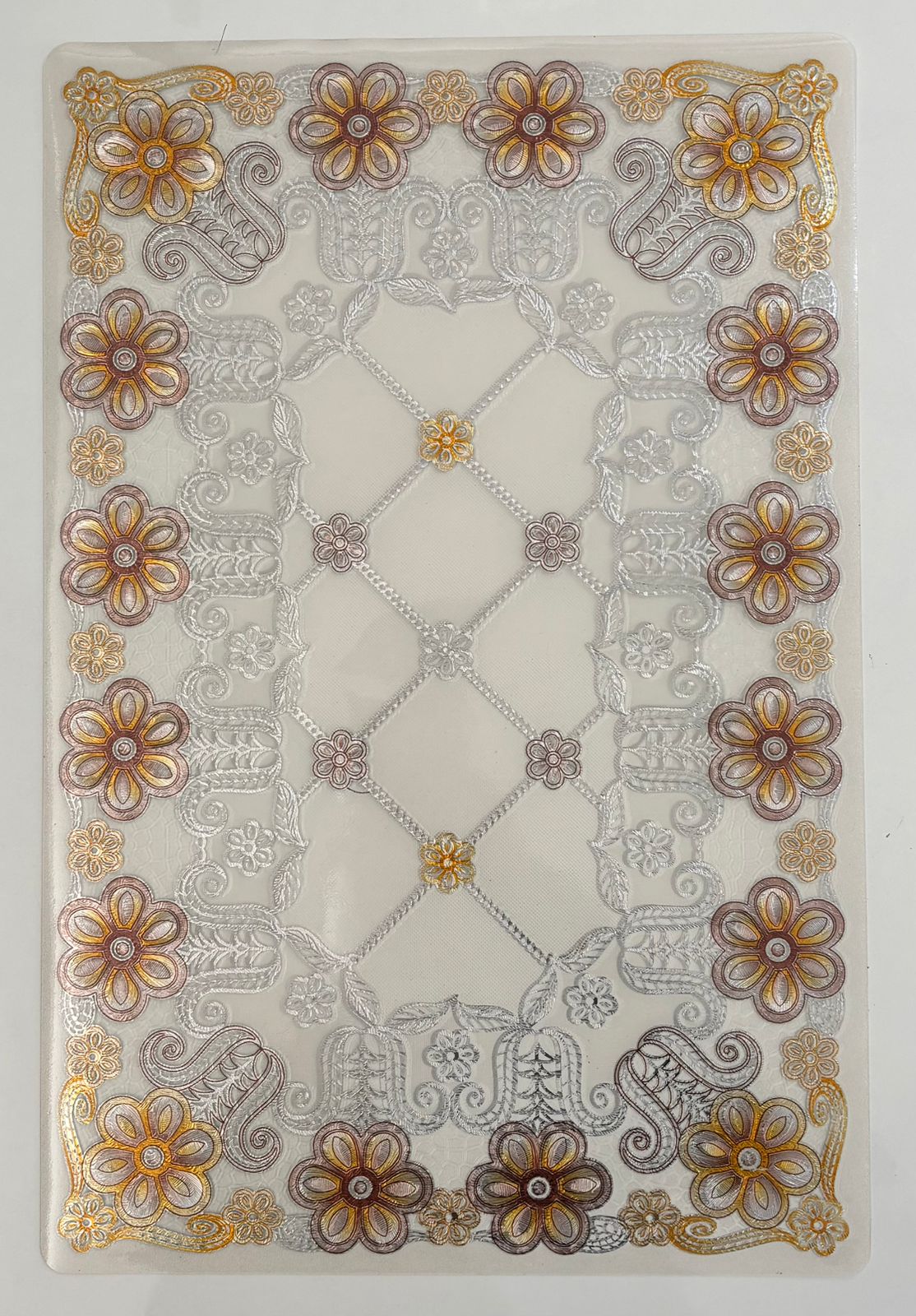 Be the first to review “Elegant Floral Embossed PVC Table Mat with Silver & Brown Detailing”