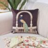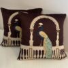 Add a regal statement to your décor with this beautifully crafted cushion cover featuring an elegant peacock under an ornate arch. The rich coffee-brown base is highlighted with ivory detailing and delicate blue-gold embroidery, creating a luxurious, palace-inspired look.