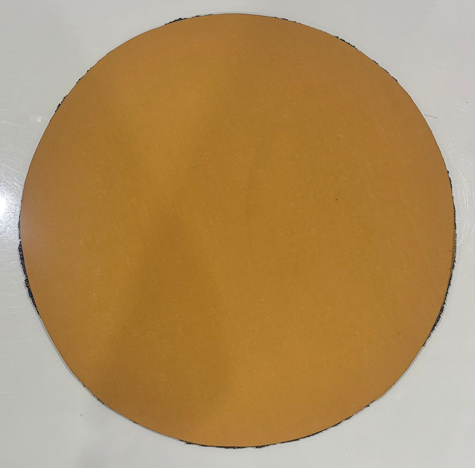 Bring timeless elegance to your dining space with this exquisitely handcrafted table mat, inspired by radiant sunflower motifs. Intricately hand-beaded with shimmering gold, deep black, and antique bronze tones, this round mat showcases exceptional artisan detailing and rich texture. The layered floral design creates a striking centerpiece that elevates everyday dining as well as festive table settings.