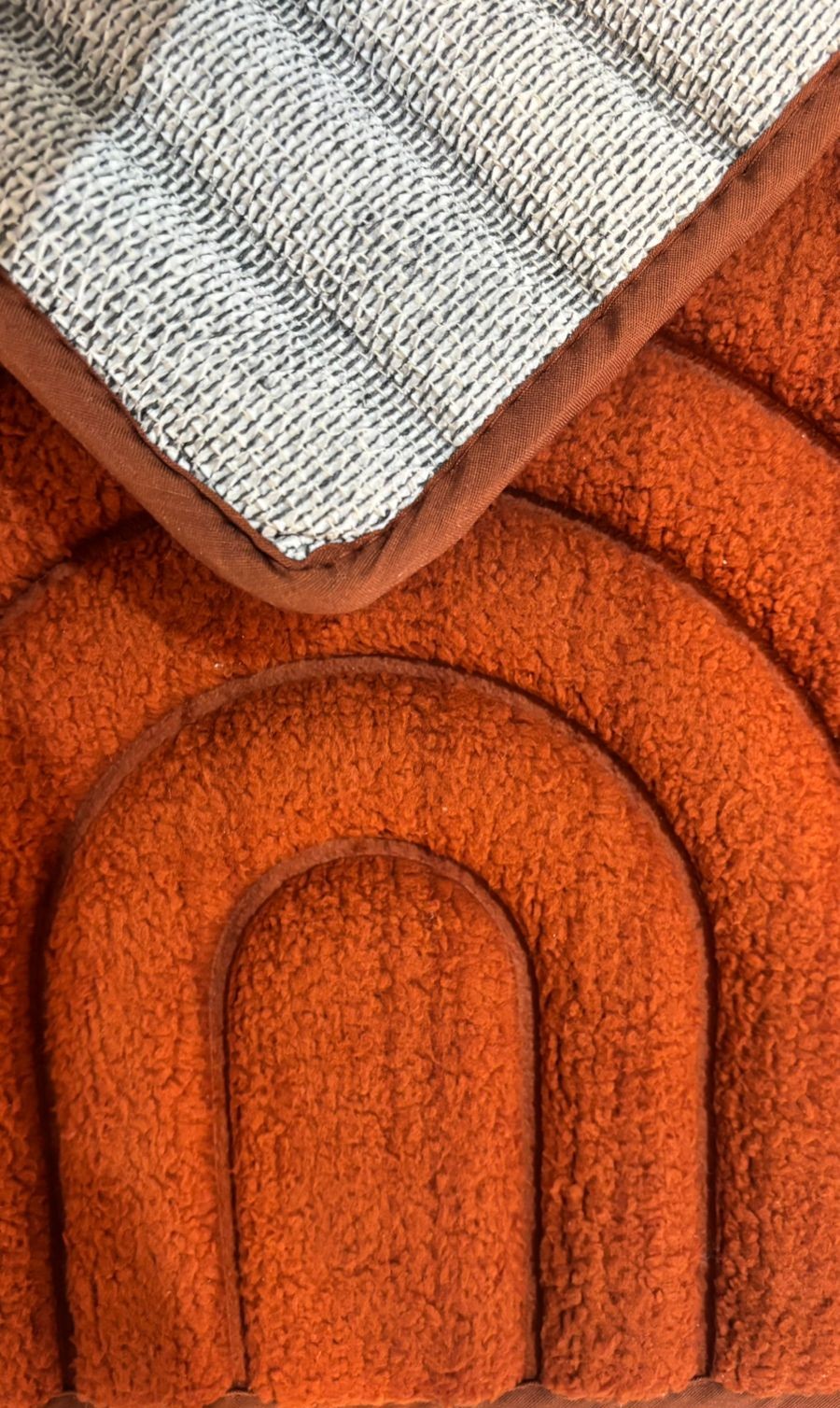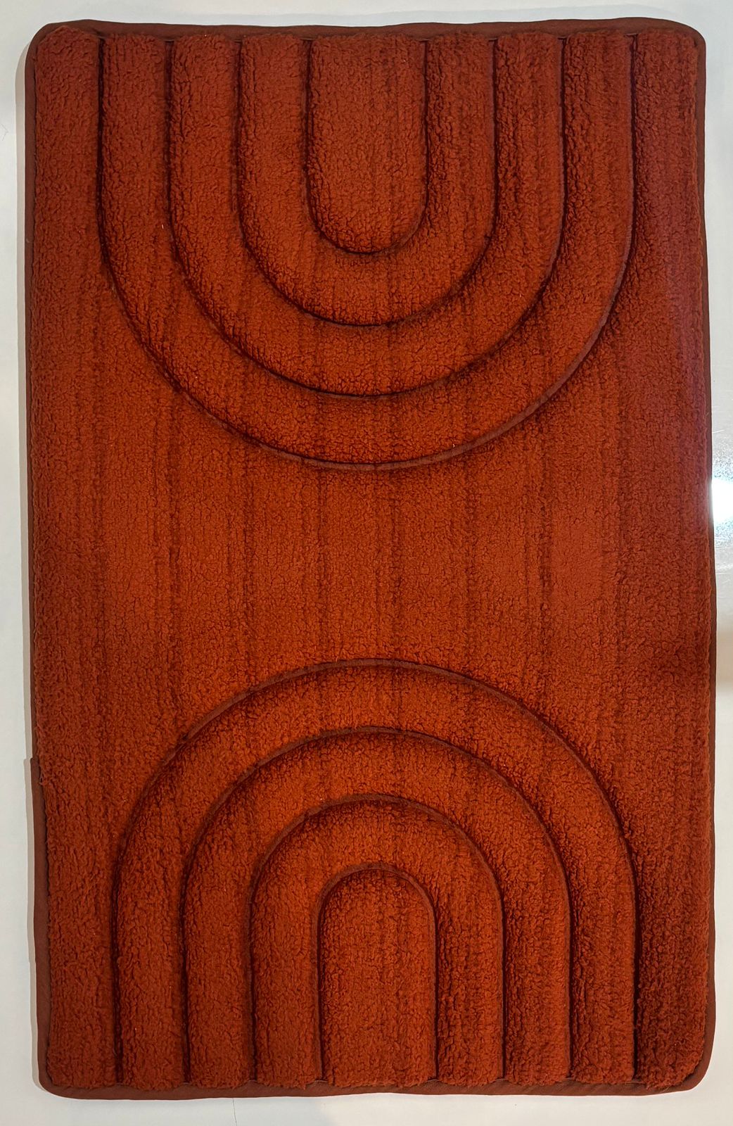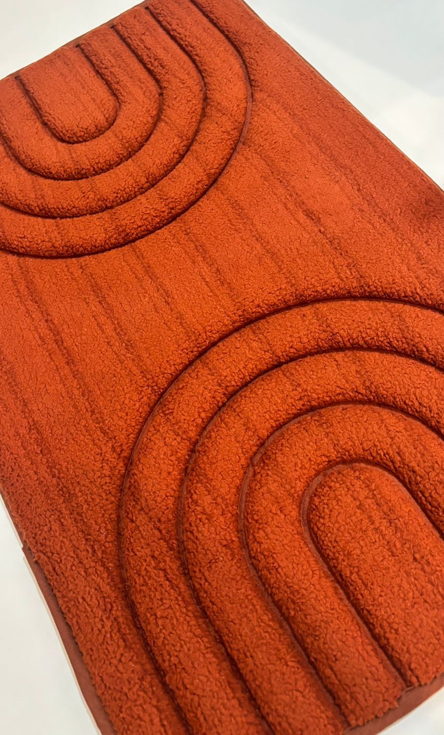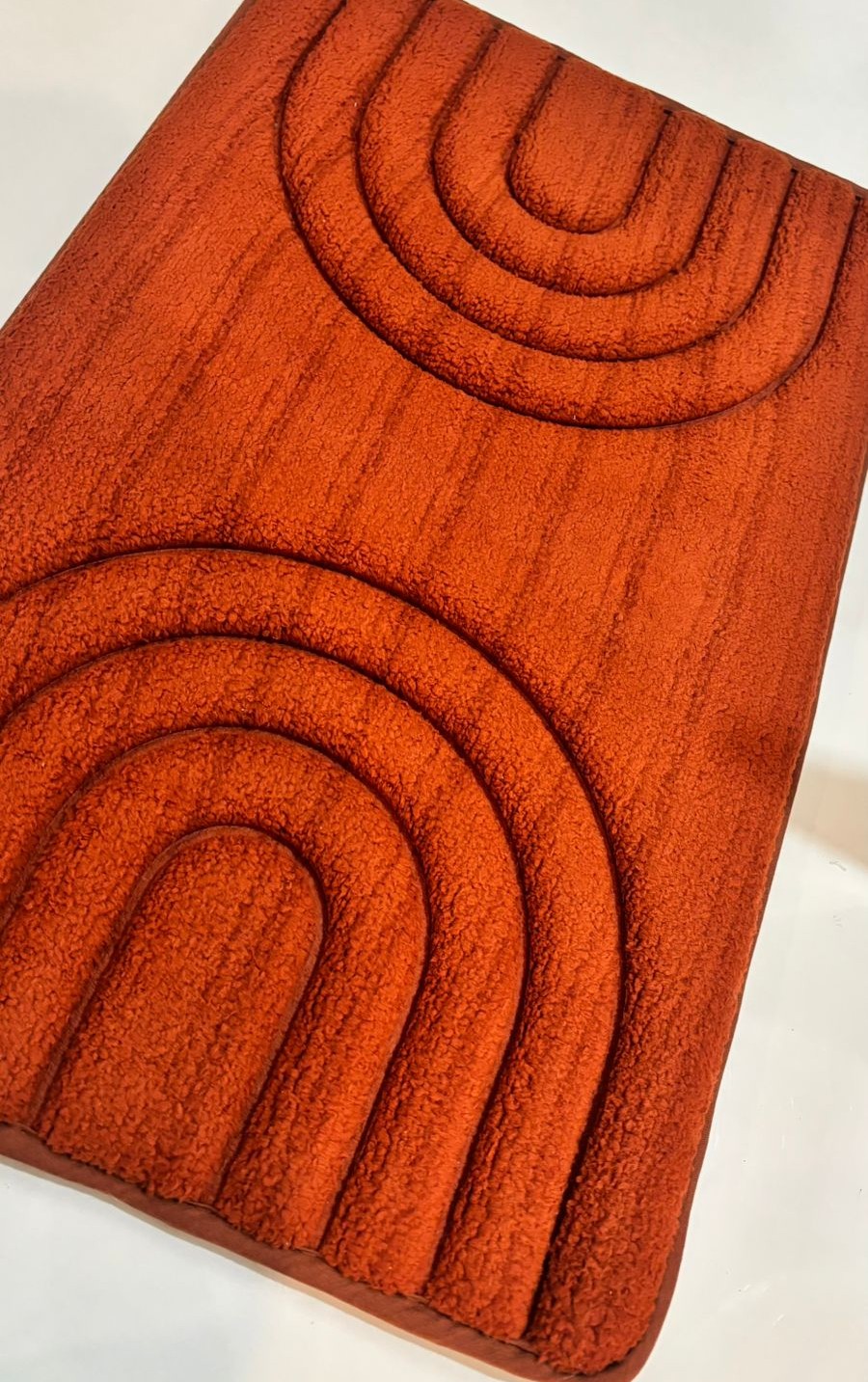 Bring warmth and character to your space with this rust terracotta floor mat featuring a layered arc pattern for a modern, artistic touch. The rich earthy colour adds depth to interiors while the soft, plush surface offers comfortable cushioning underfoot. Designed to trap dust and moisture, it helps keep floors clean and dry.