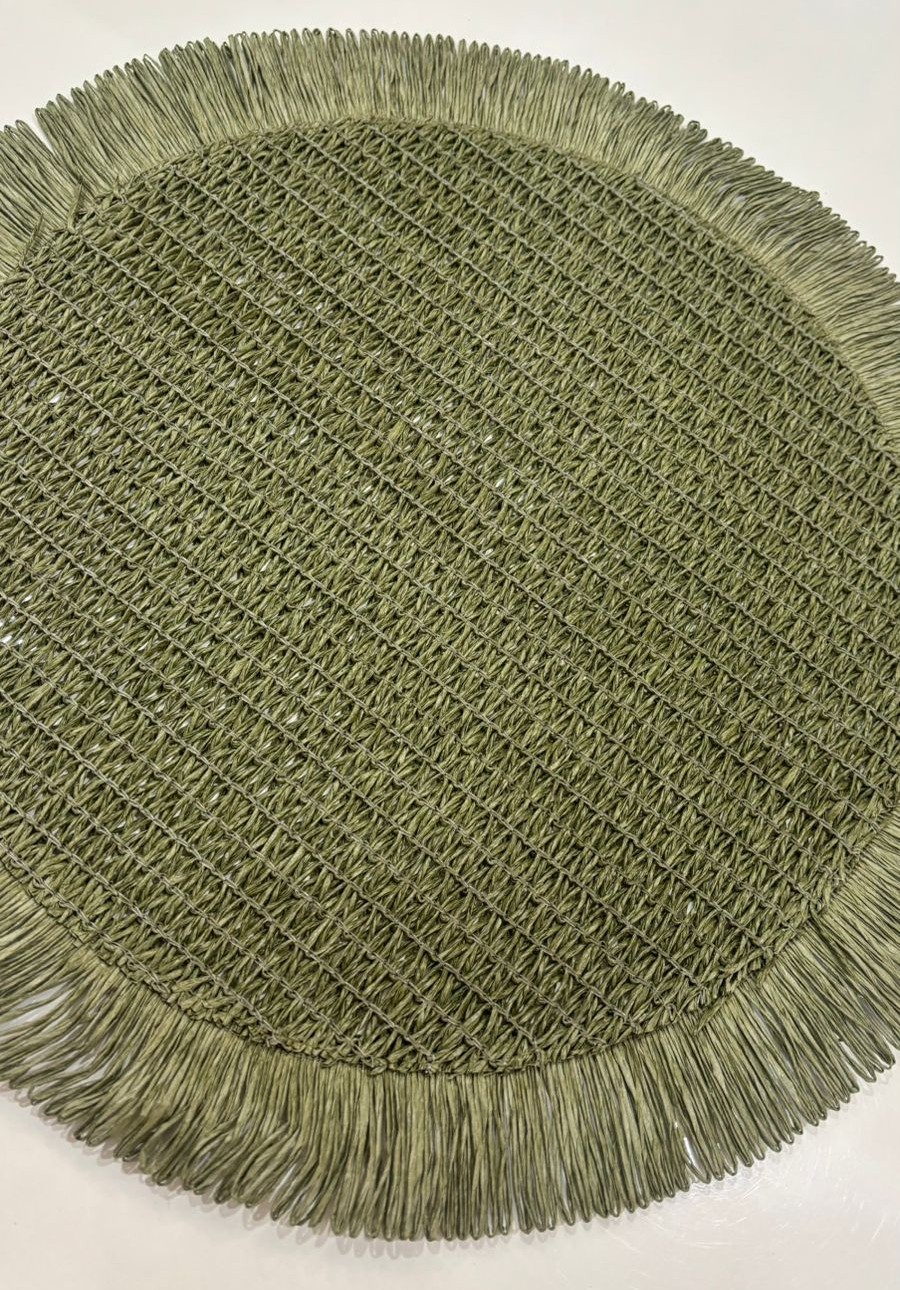 Bring an organic, earthy feel to your tabletop with this sage green circular placemat. Designed to evoke the calmness of nature, this mat features a soft mossy tone that blends seamlessly with rustic or botanical-themed decor.