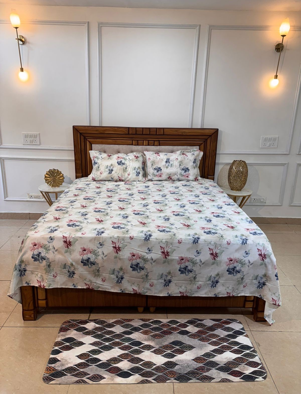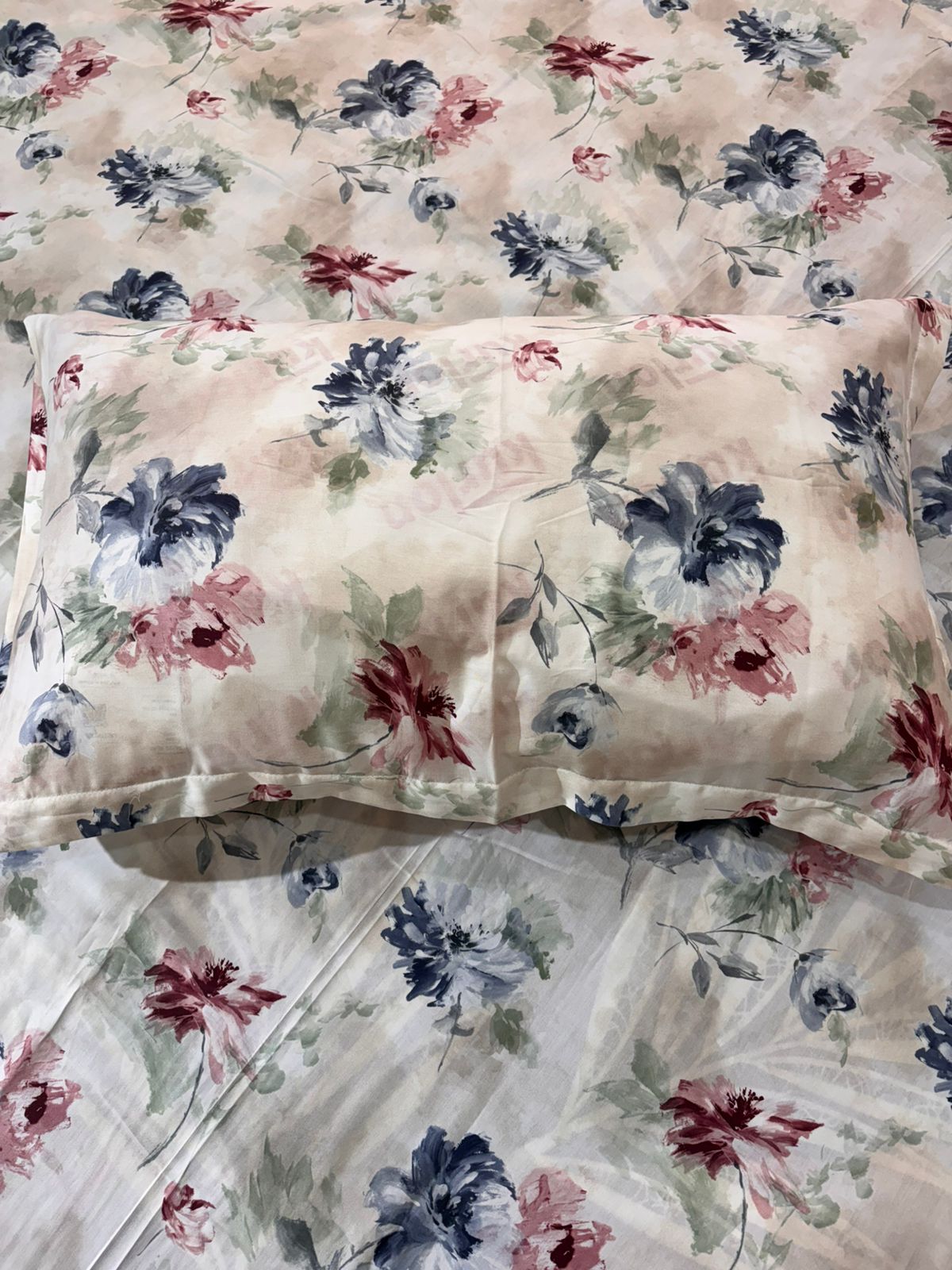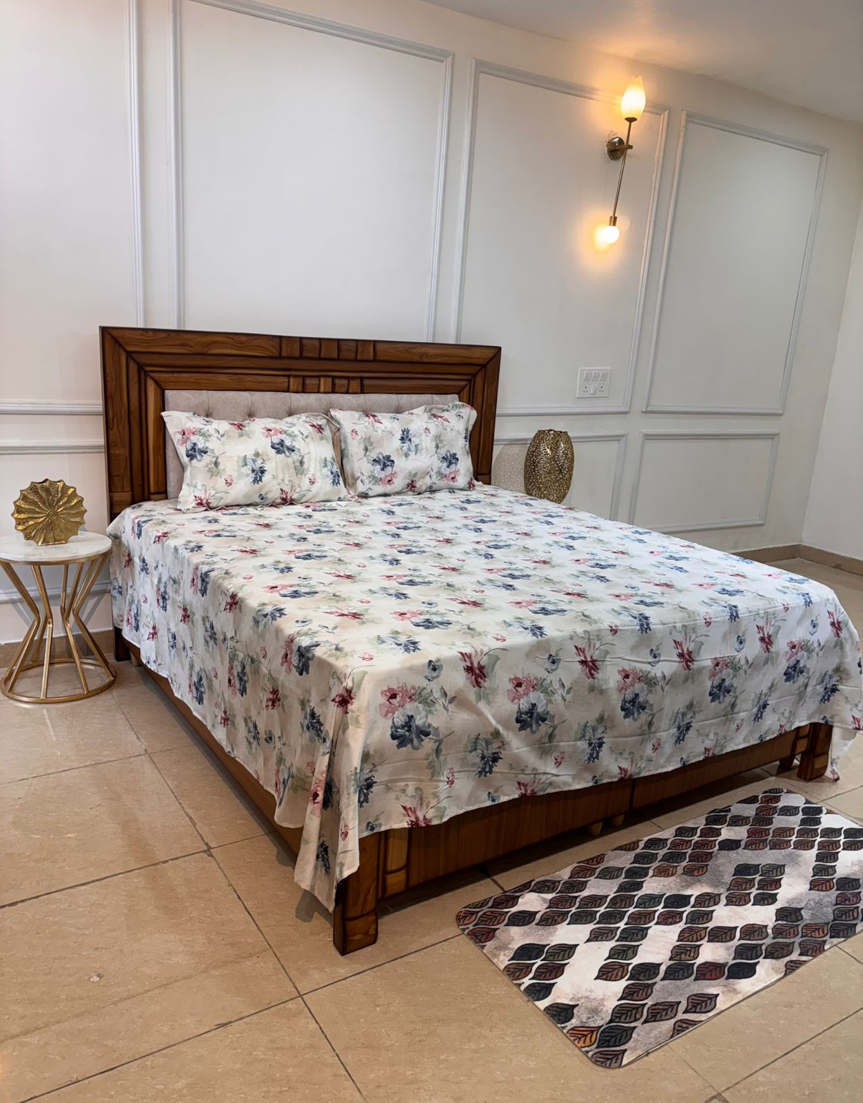 Transform your bedroom into a peaceful sanctuary with this elegant watercolor floral bedsheet set. The design features soft, artistic blooms in a scattered bouquet pattern, creating a look that is both romantic and sophisticated.
