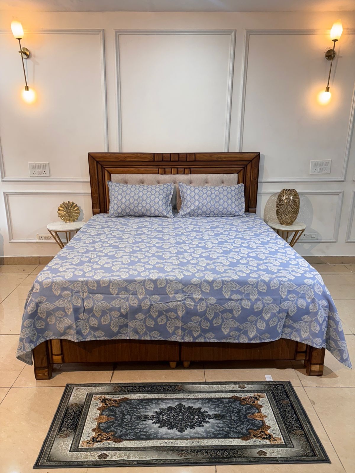 SERENE SKY BLUE LEAF BEDCOVER – GRACEFUL EVERYDAY ELEGANCE