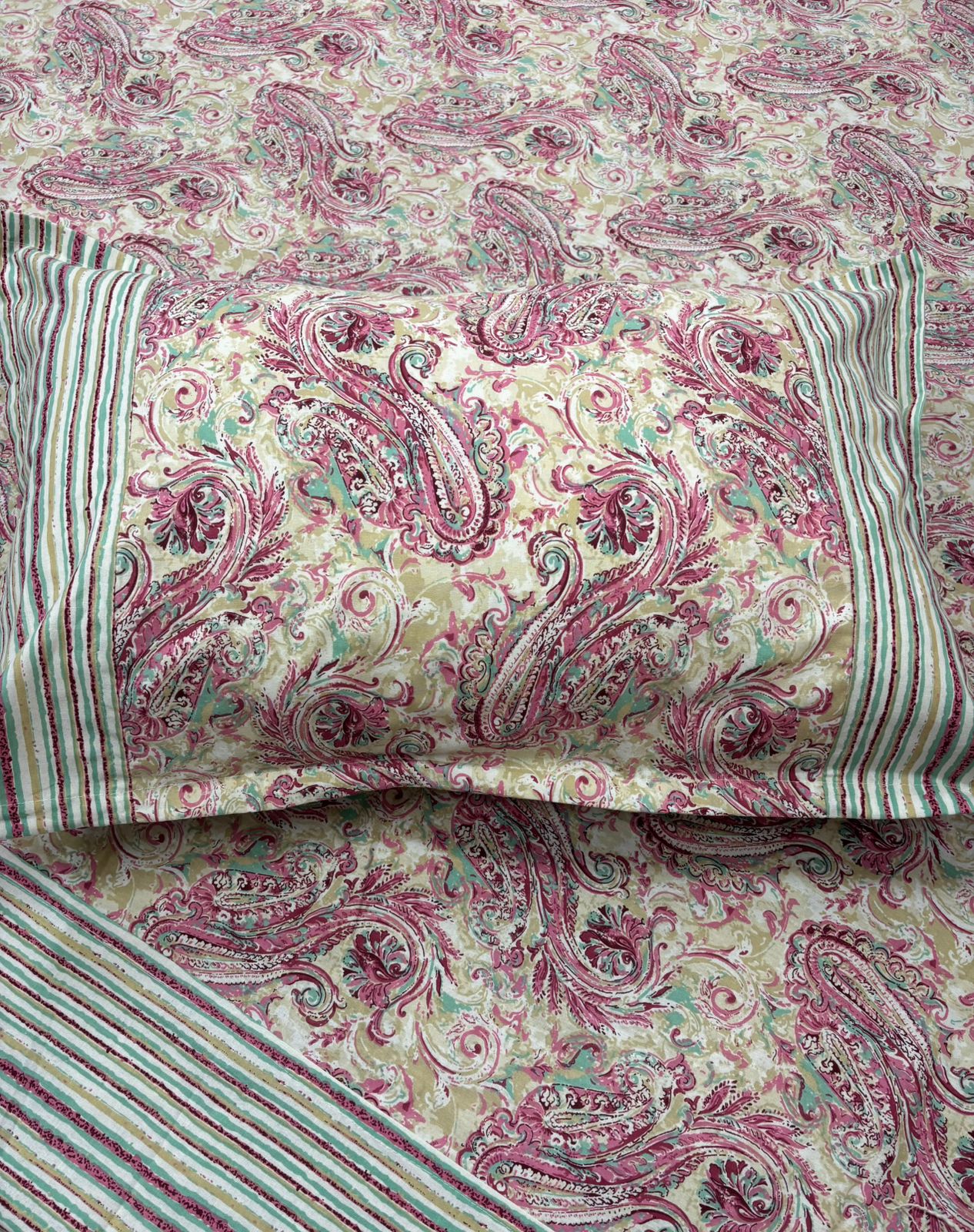 In traditional Azrak printing, every motif tells a story. We’ve extended that story to our matching pillow covers, which serve as the perfect introduction to the sprawling garden scene on your bedsheet.
