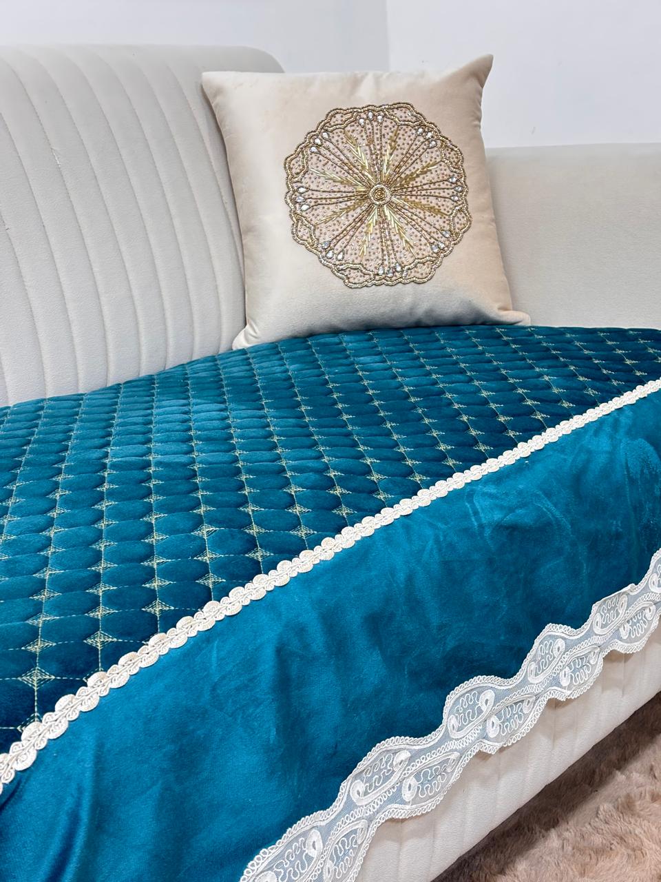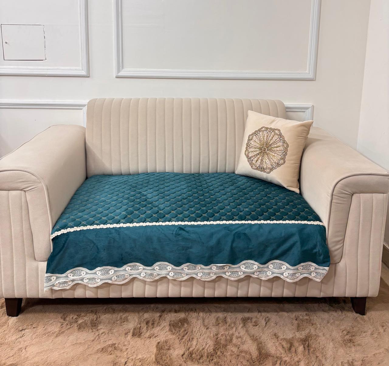 Infuse your home with the vibrant elegance of the Mediterranean with this peacock teal quilted velvet sofa cover. Designed for the bold decorator, this cover pairs a deep, jewel-toned palette with classic textures to create a look that is both luxurious and protective.