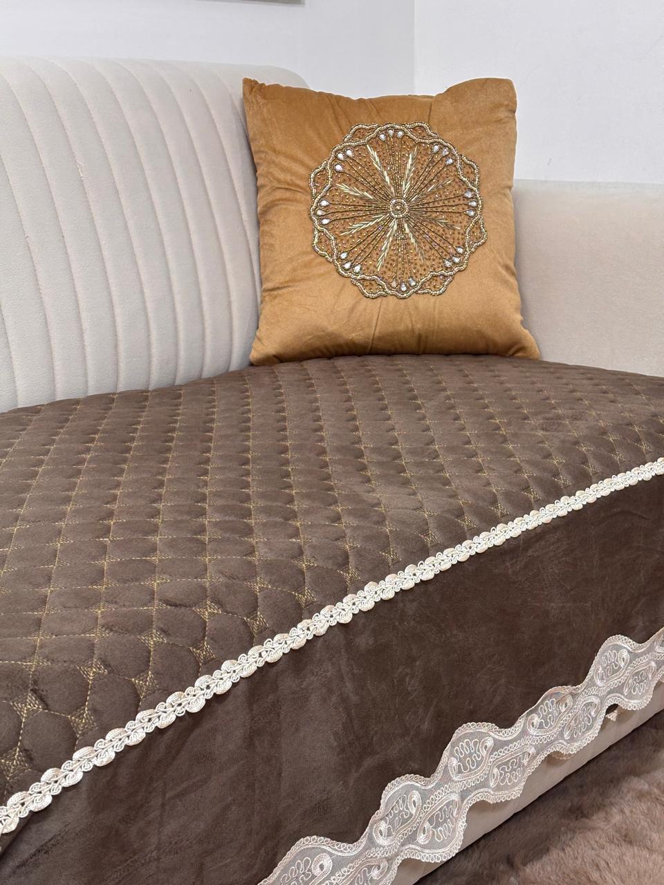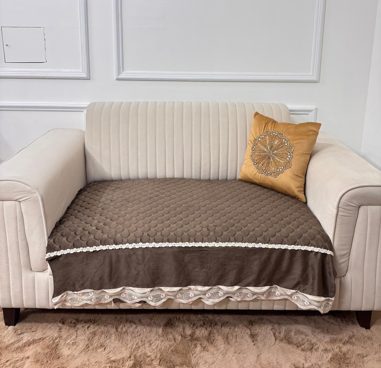Be the first to review “The Rustic Choice: Coffee Brown Diamond-Quilted Sofa Cover with Scalloped Lace”