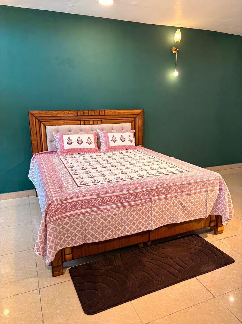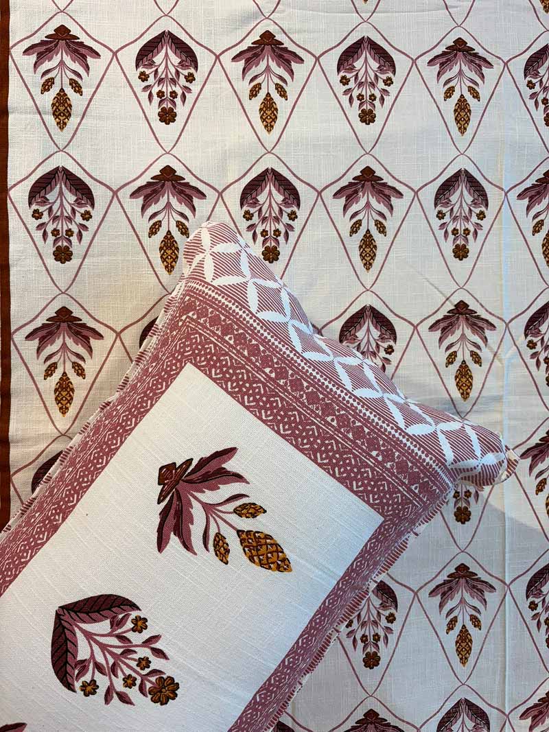 Grace your bedroom with this Traditional Buta bedsheet in rosewood pink, crafted from premium pure cotton duck fabric. Breathable, durable, and sized perfectly for king beds with a touch of Anokhi artistry.