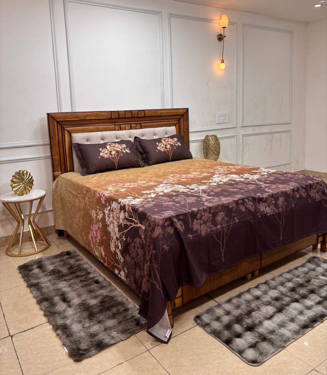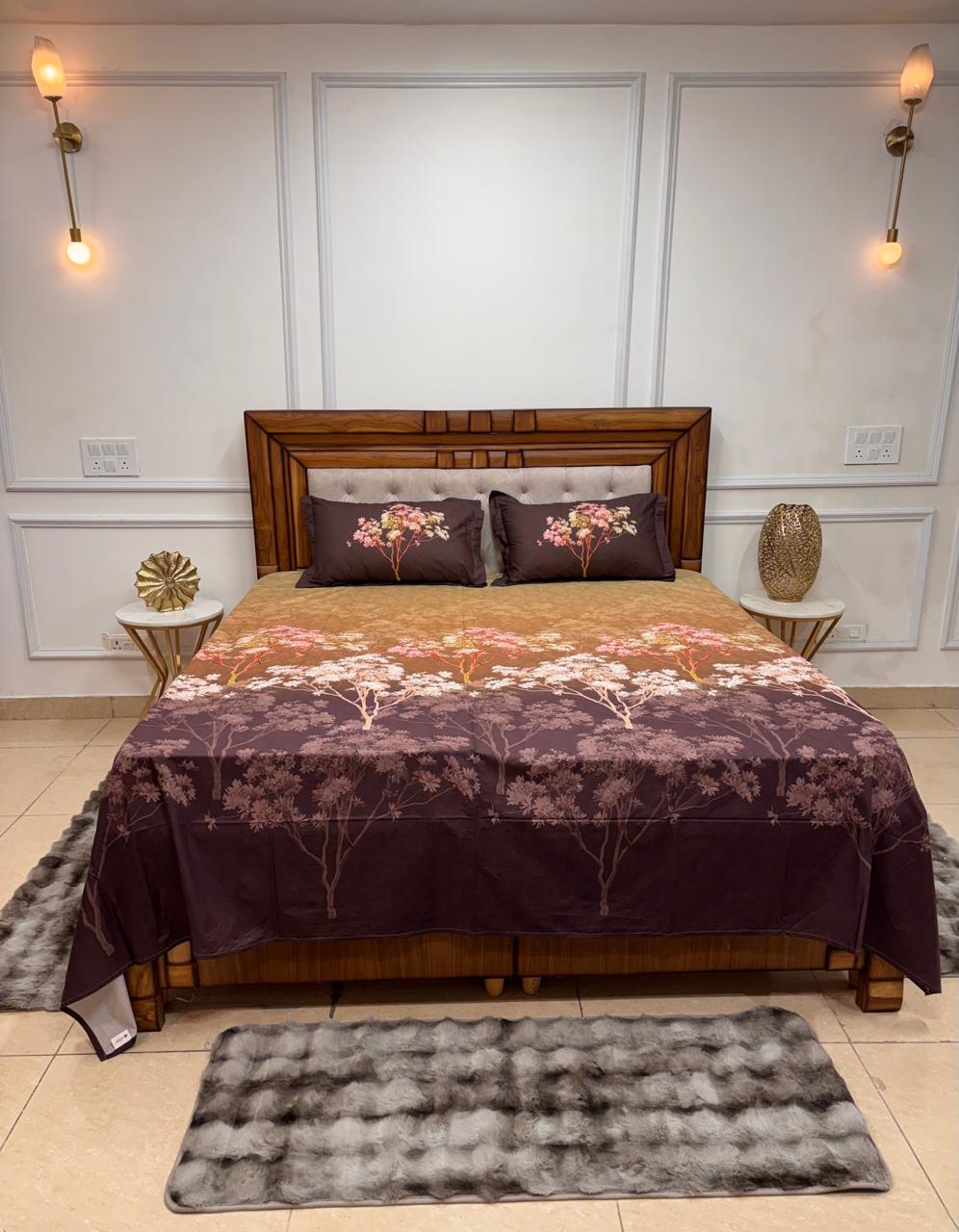 Twilight Orchard Ombré Premium Bedsheet Set with matching pillow cover